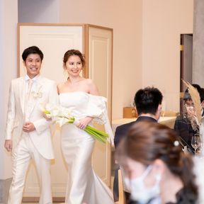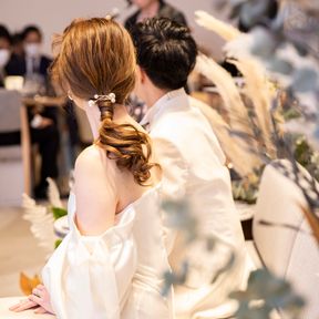 コロナ禍ということは除いて、元々職場の上司等は呼ばず家族、親族、親しい友人を中心にゲストとしてお迎えし、アットホームな式にするのがお互いの希望でした。