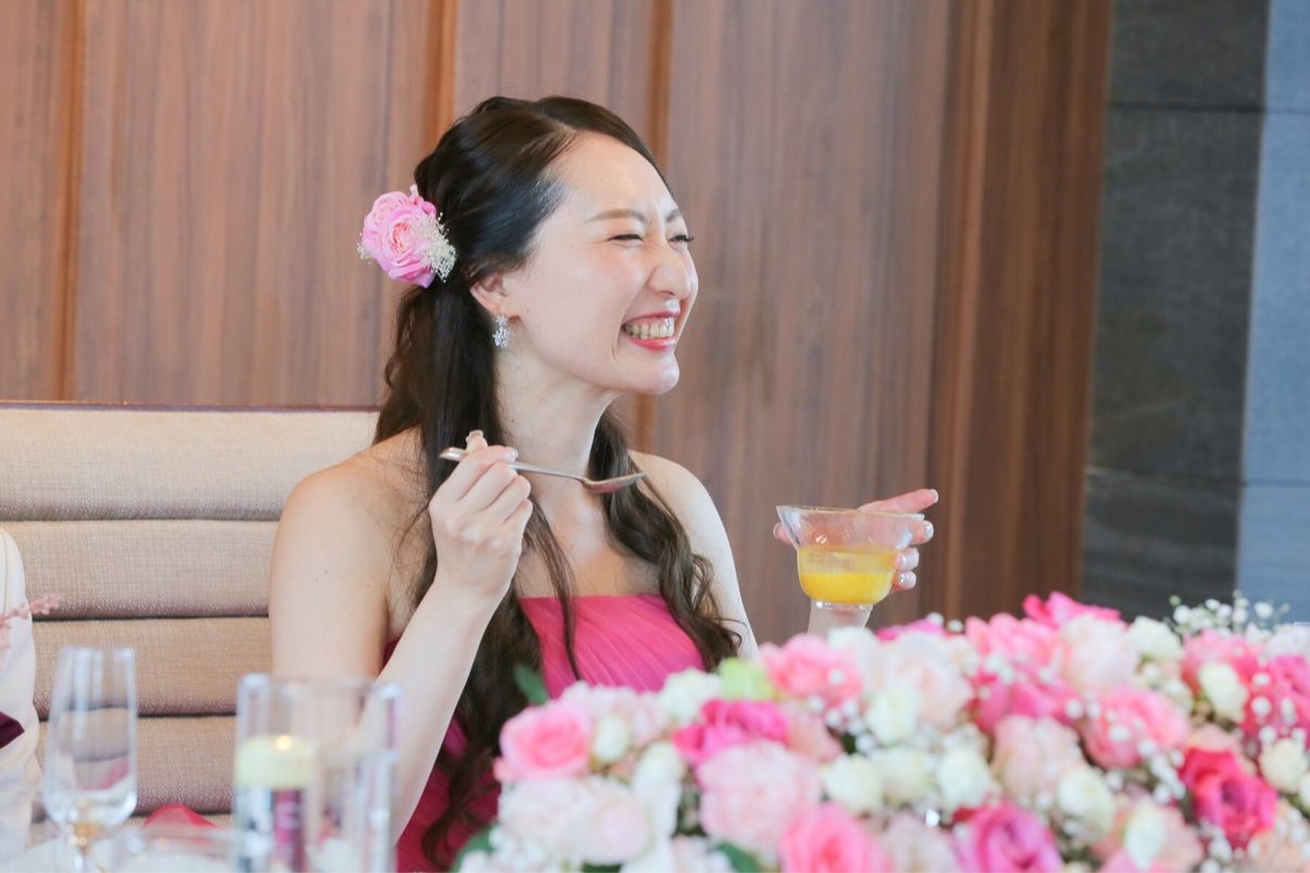 新型コロナウイルスの影響で、ゲストの欠席が相次ぎました。そんな中、大勢で来てくれた中学高校時代の友人たち。当日は彼女たちの顔を見るたびに、感謝と安心で涙が止まりませんでした。