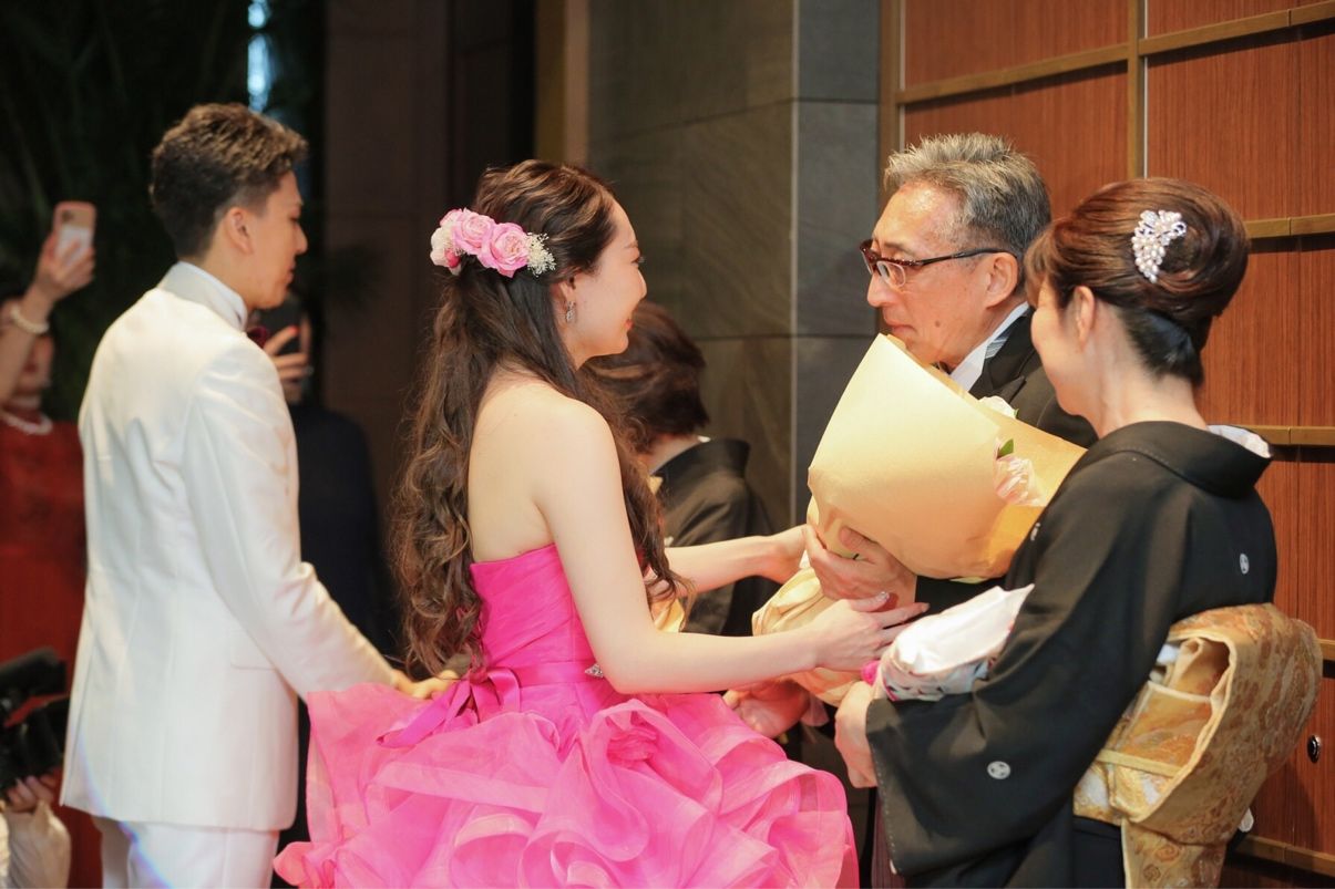今まで父の涙をほとんど見たことありませんでしたが、そんな父が、挙式前の親族紹介の時から披露宴の謝辞まで、一日感動で泣いていました。