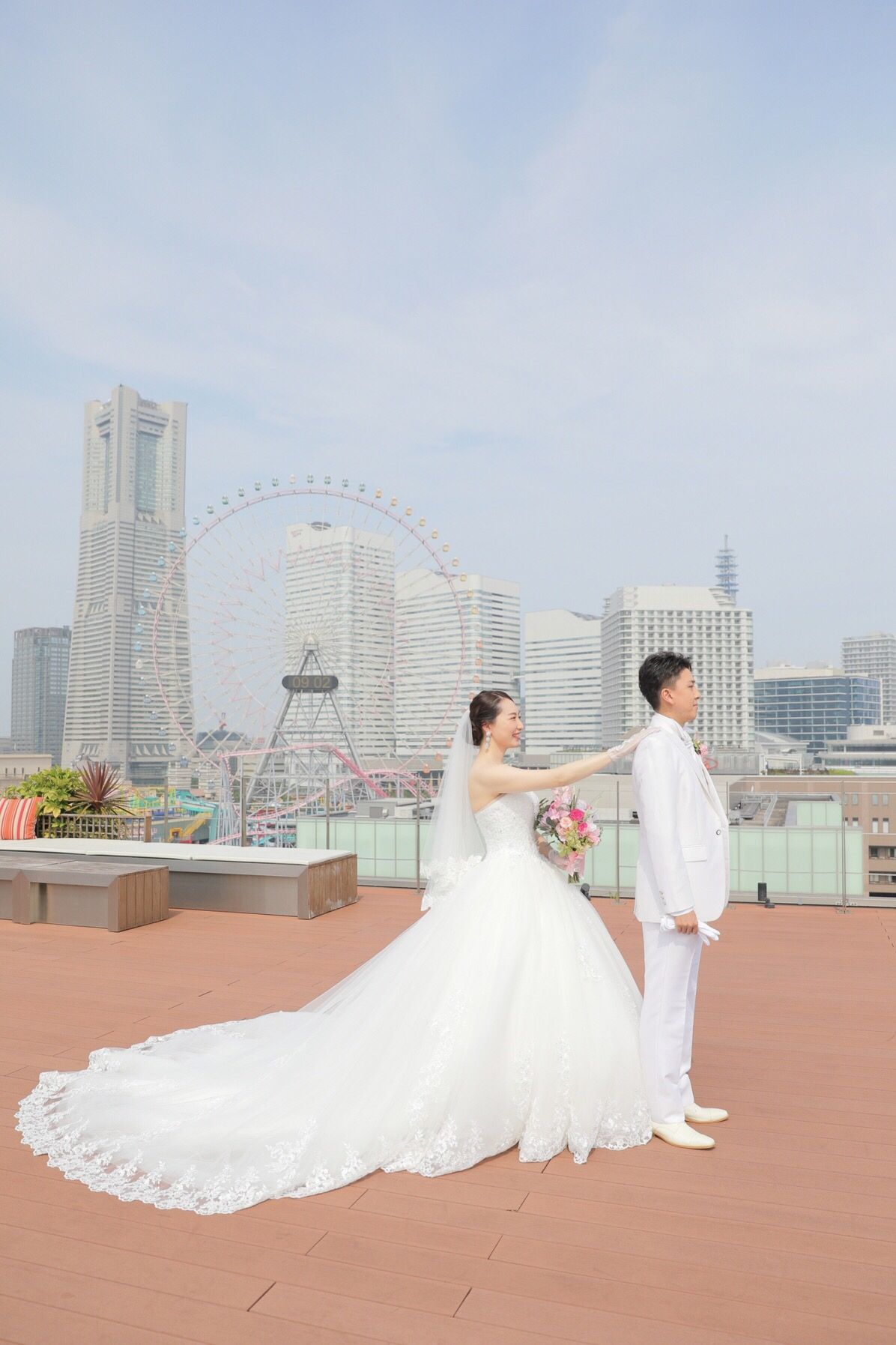 最上階のハーバールームからは、下階よりもみなとみらいの観覧車がよく見えます🎡3面ガラス張りなので、目の前に広がる横浜港の景色を堪能できます🚢ハーバールームはとにかく眺望が最高です!天井も高く、後方のオープンキッチンからは直接お料理が運ばれ、本当に素敵な会場です💓