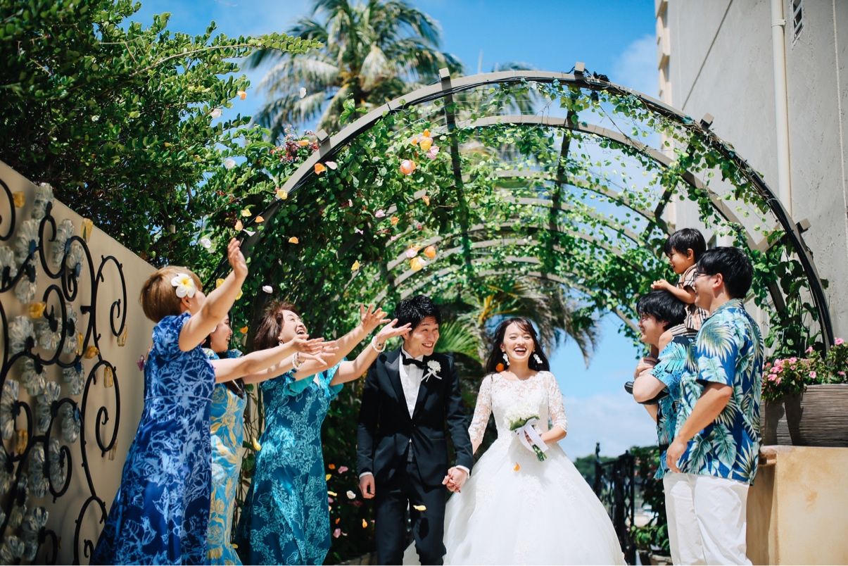 目の前に広がる海と、コアウッドのチャペルがハワイらしさ満点です。