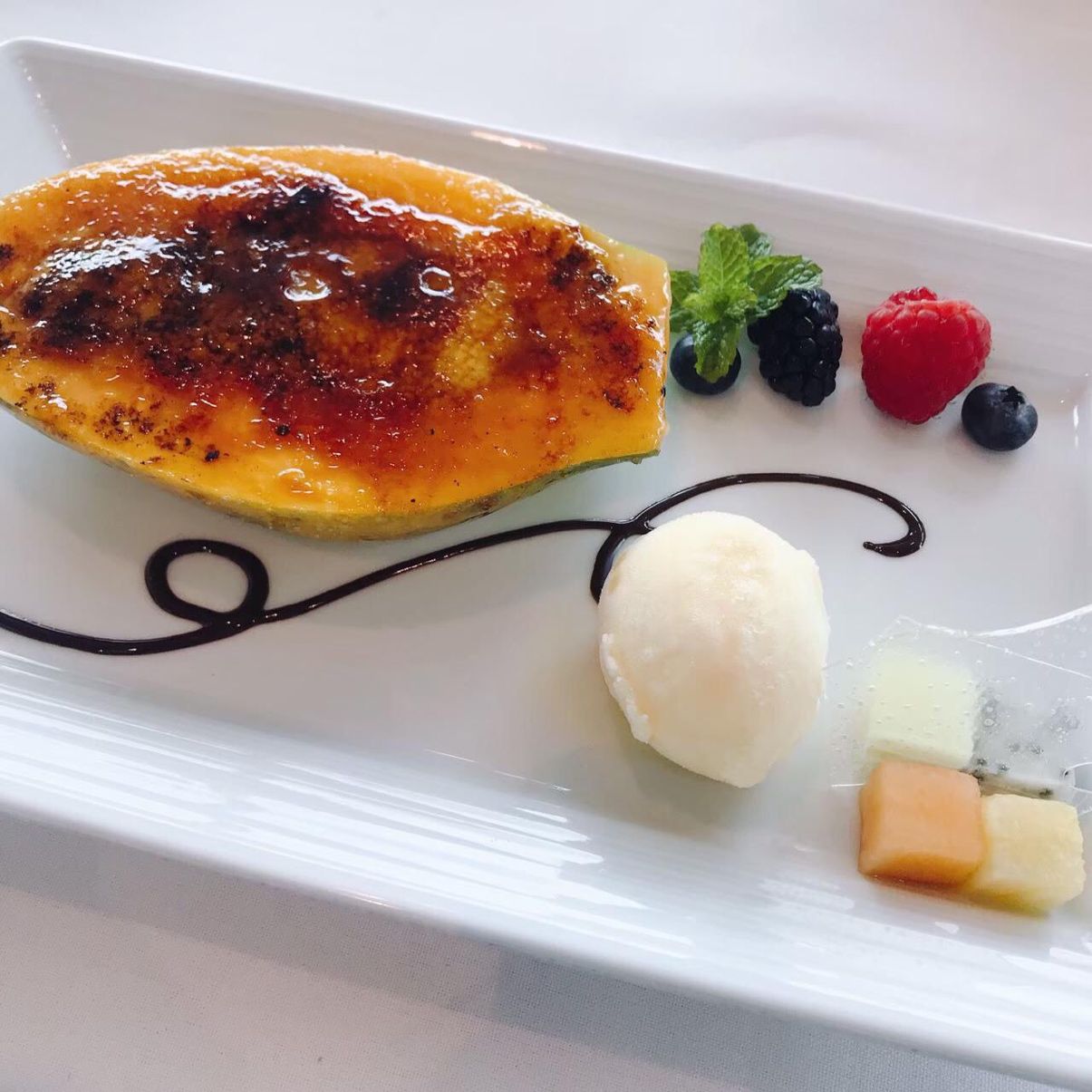 パパイヤのクレームブリュレが食べられるコースにしました。ゲストも、特にこれが美味しかったと言っていたので良かったです。
