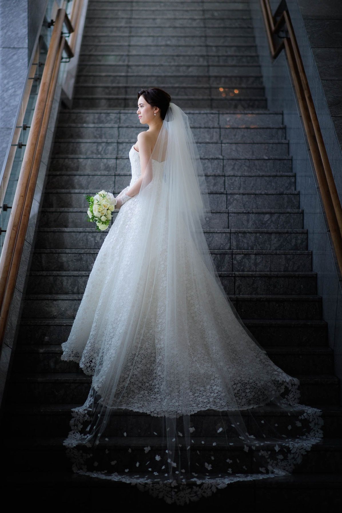 バージンロードも長かったので、当日歩いていてやっと本番を迎えたなという実感を深く持つことができました。バージンロードの装花が無いと寂しいかなと思っていましたが、無くても全く寂しく無く違和感もありませんでした。特に引きの写真が気に入っています!
