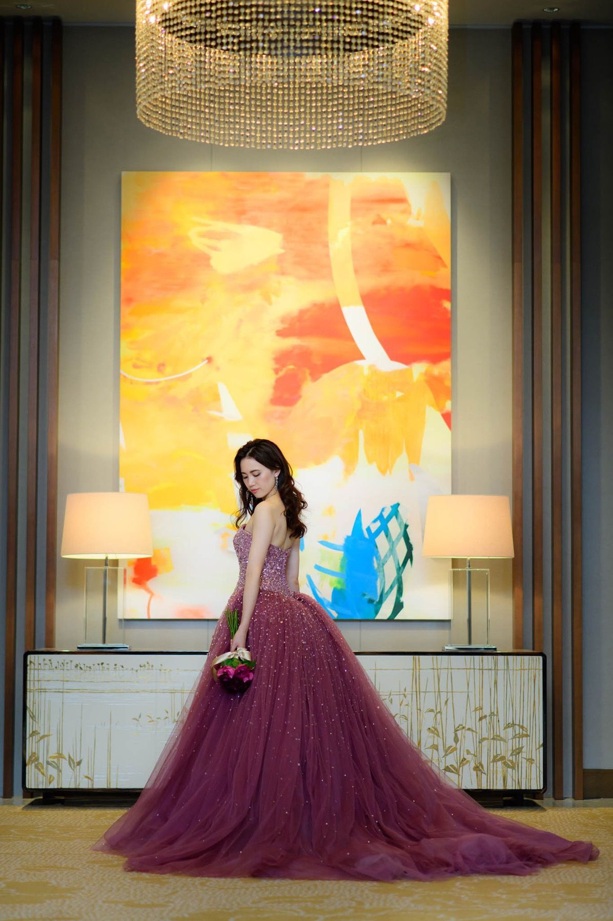 グラデーションのピンク、ビジューのキラキラどちらもとても気に入りこのドレスを選びました!