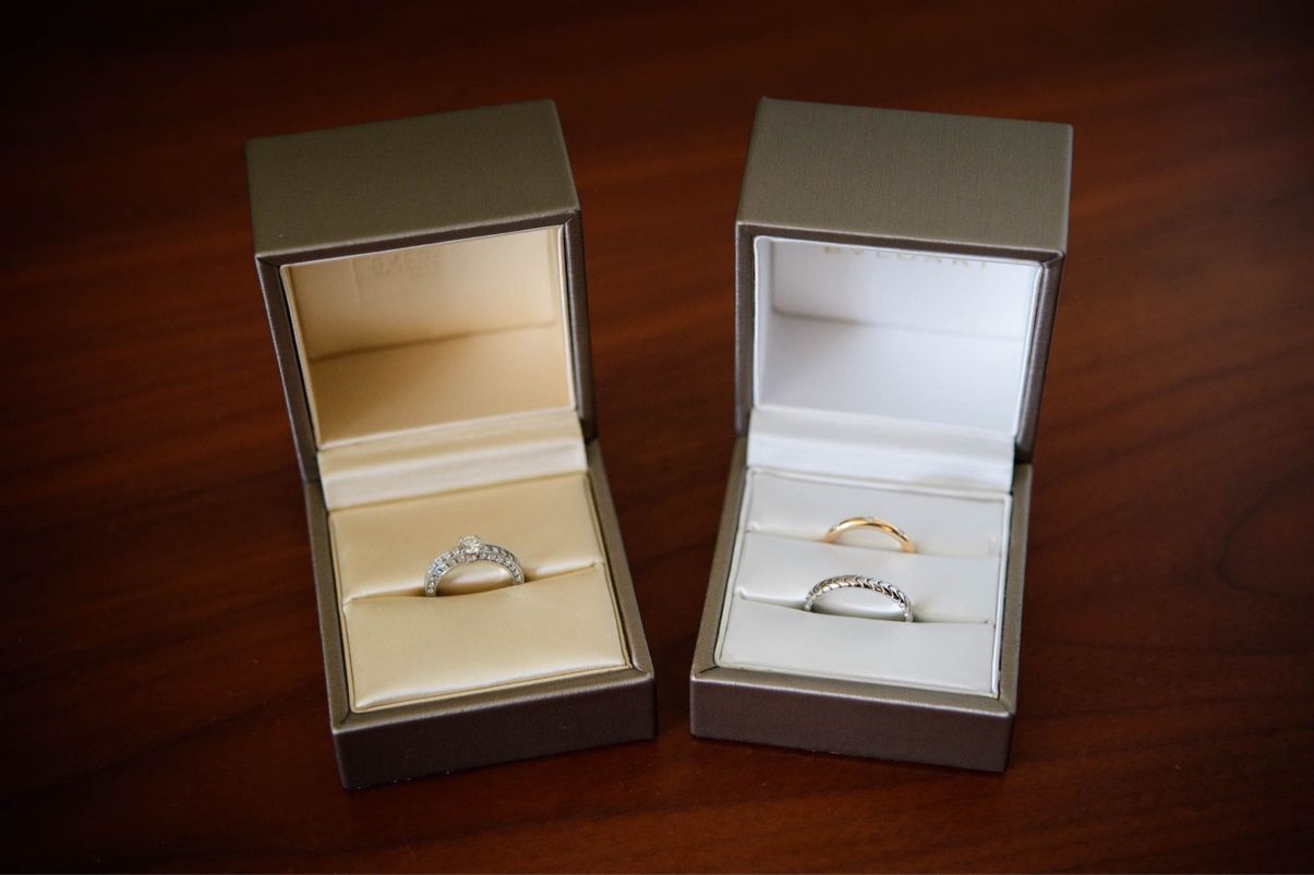 ピンクゴールドでダイヤが3つ入っているものを選びました!因みに主人はまったく別のデザインです。