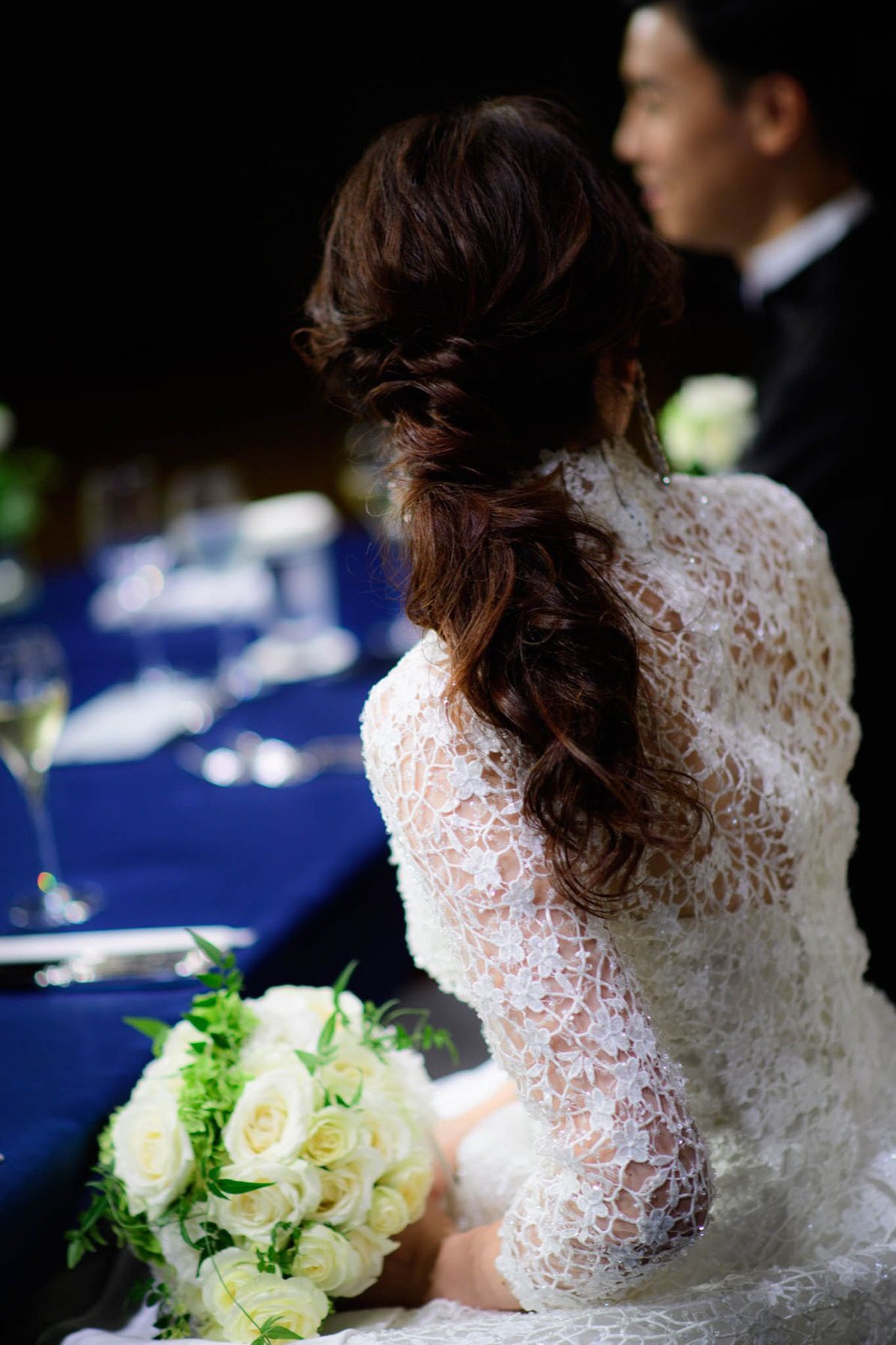 装花のテイストは上品でエレガント、誰から見ても素敵だと思ってもらえるようなものにしました。