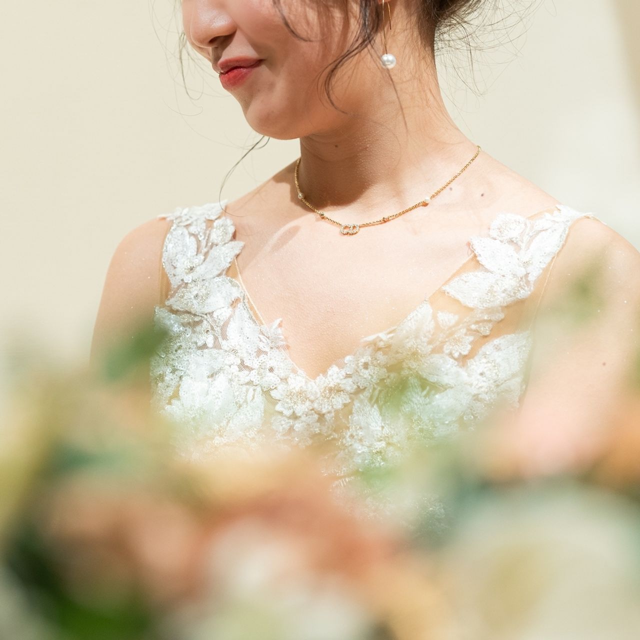 また、サプライズでいただいたDiorのネックレスを急遽着けることになったので、ピアスはシンプル目にしました。