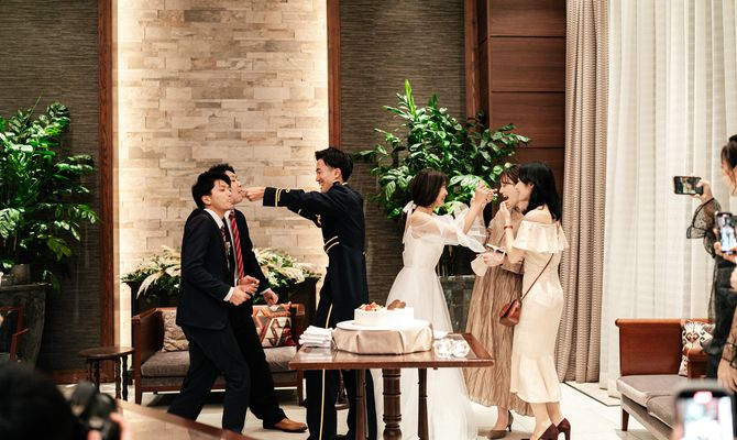 屋上からみなとみらいが一望でき、エントランスに入った瞬間から海外に来たかのようなワクワク感に包み込まれる雰囲気に惚れ、グランドオリエンタル みなとみらい(THE GRAND ORIENTAL MINATOMIRAI)に決定しました。屋上からだけではなく、会場からもみなとみらいが一望できる素敵な式場です。