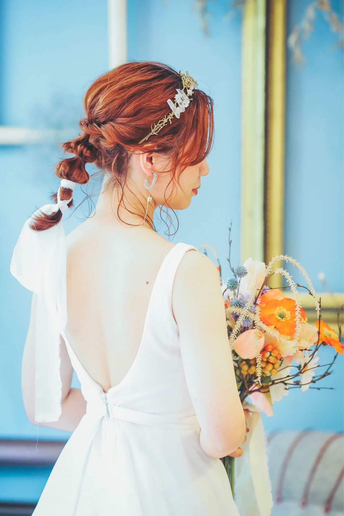 カチッとした髪型ではなく、ルーズな感じでお願いしました。後れ毛がぴょんぴょん出ている感じが好きだったので、たくさん後れ毛を出してもらいました!