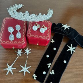 高さとボリュームがありながら繊細な輝きで、顔まわりを上品に華やかに見せてくれます。