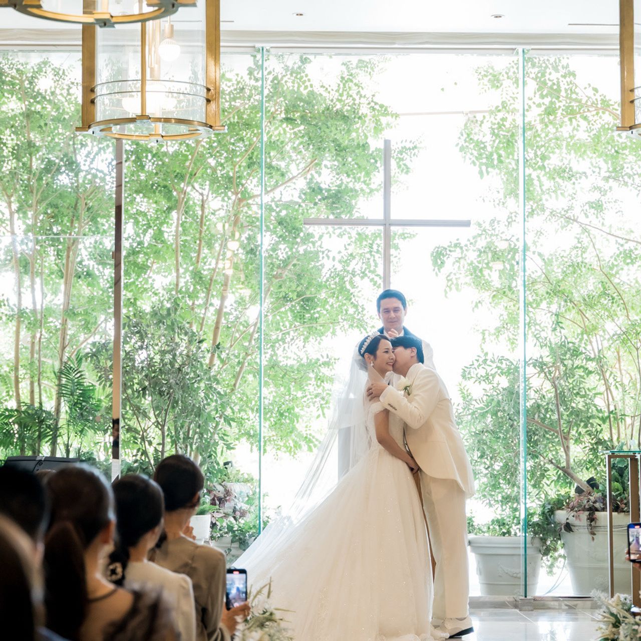 大きな窓から差し込む光と海の青に包まれながら、生演奏の音色が誓いのシーンをより印象的に彩ってくれました。