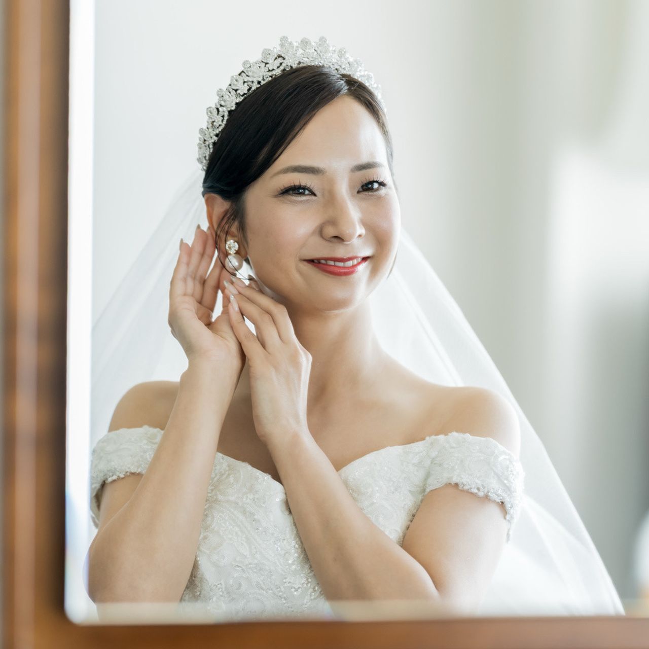 光を受けてさりげなく輝くので、写真でも美しく映え、清楚さと華やかさを両立できます。