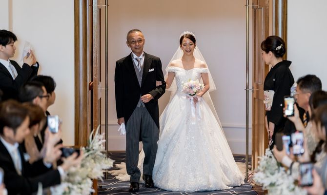 演出では、入場前にゲスト全員に手紙を読んでいただく「スイッチングレター」を取り入れ、式の始まりから感謝を共有できる空間にしました。