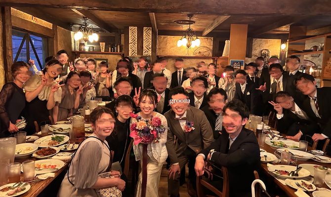 「アットホームでゲストの皆さんに楽しんでいただける、笑顔いっぱいの結婚式」をテーマにしました。同窓会のようにゲスト同士も楽しみ、来てよかったと思って頂けるように心地の良い空間作りを意識しました。