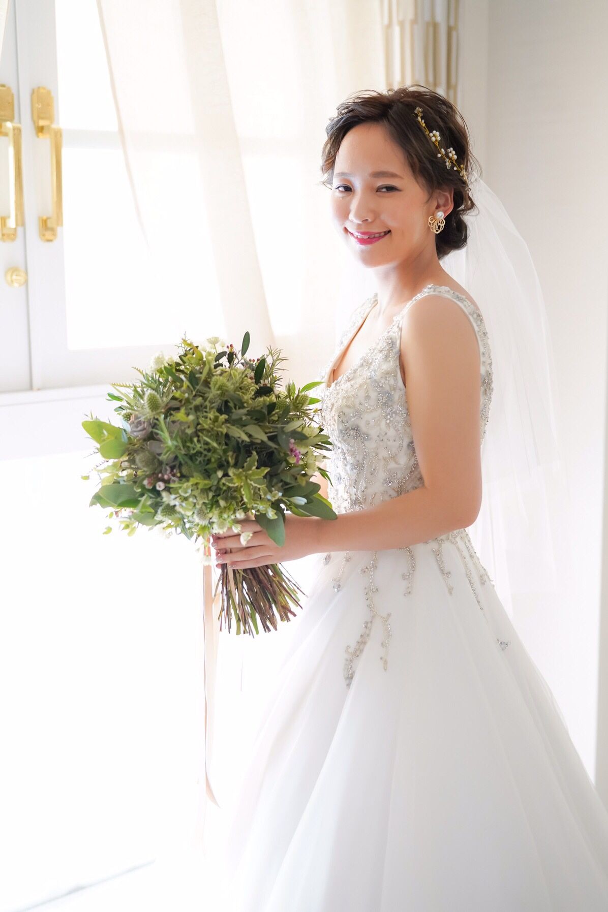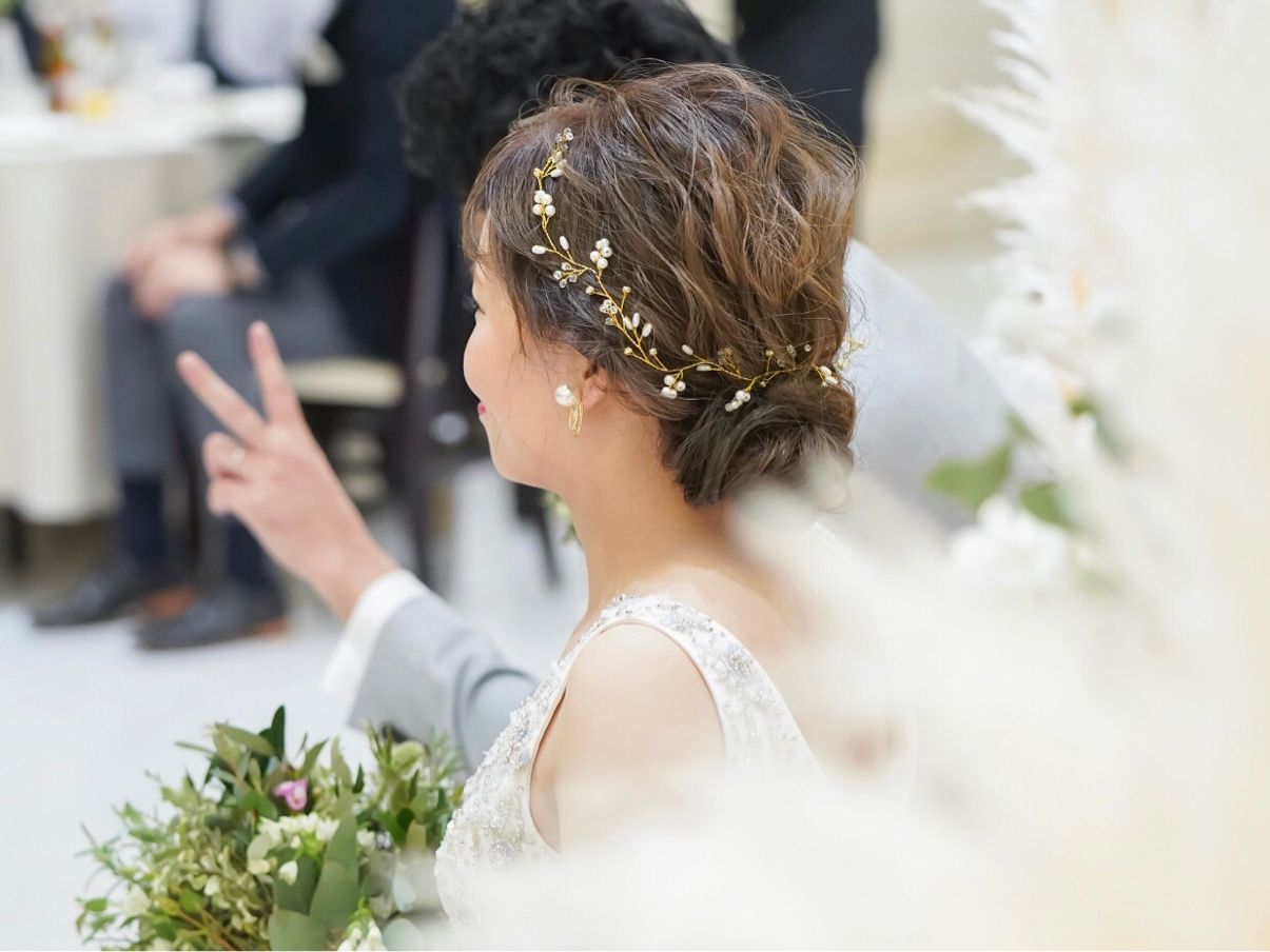 WD:ゴールドの小枝のヘッドアクセ。パールも散りばめられていてキラキラでした。