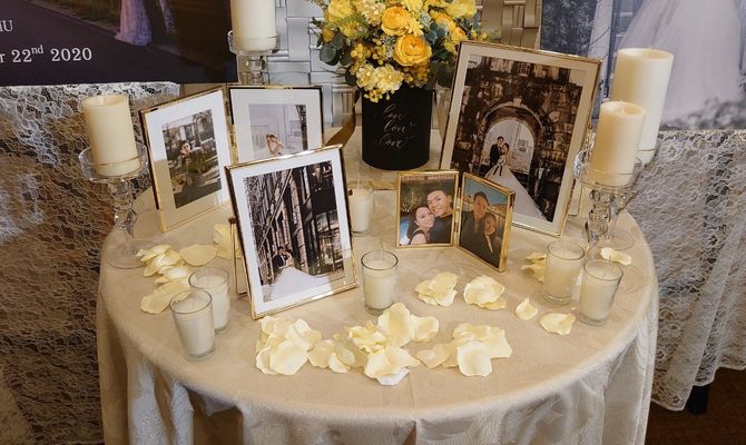 結婚式のテーマは「晩餐会」です。母が音楽が好きなこともあり、披露宴では生演奏を取り入れました。音楽を聴きながらお食事をゆっくり楽しんでもらえるような晩餐会スタイルにこだわり、CD音源はほとんど使用しておりません。またテーブル装花はキャンドル装花に統一しました。流しテーブルを行いたかったのですが、コロナウィルスの影響もあり対面式は難しく、できなかったですが、とてもクラシカルな雰囲気にできて良かったです🌷