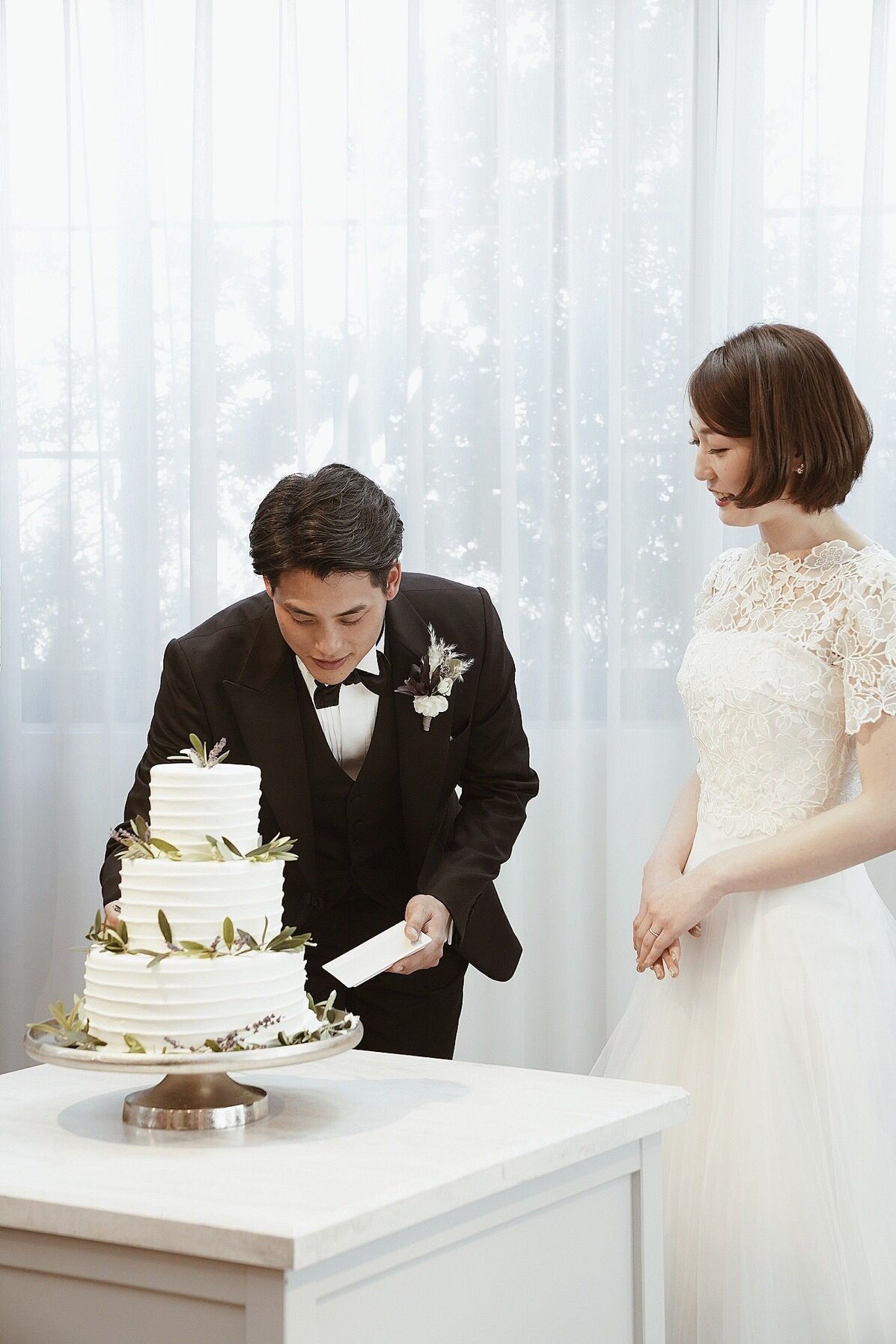 ユーカリとラベンダーを載せた、会場の装花と雰囲気に合うケーキにしました。