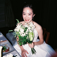 ホワイト基調で少しグリーン入れたお花にしました。基本装花も全てホワイト基調にしていただきました。