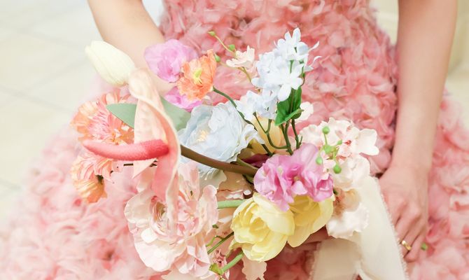 真っ白な会場がピンクのお花でいっぱいに包まれてゲストを迎えられ、ゲストも非日常を味わってもらえたのではないかと思います!