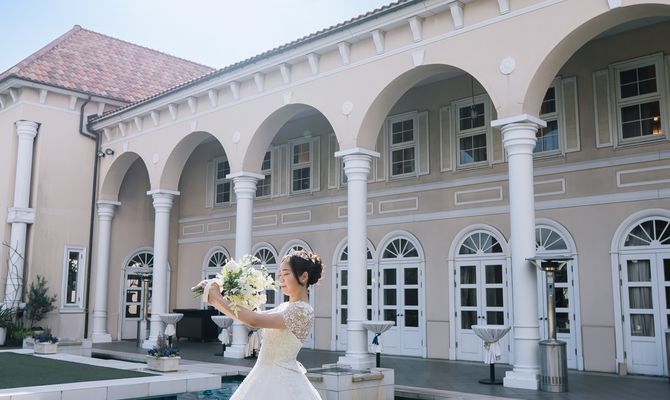 入口からチャペルまでの間にある一つひとつの邸宅の並び、雰囲気がとても素敵で絶対にここで挙げたいと思いました!