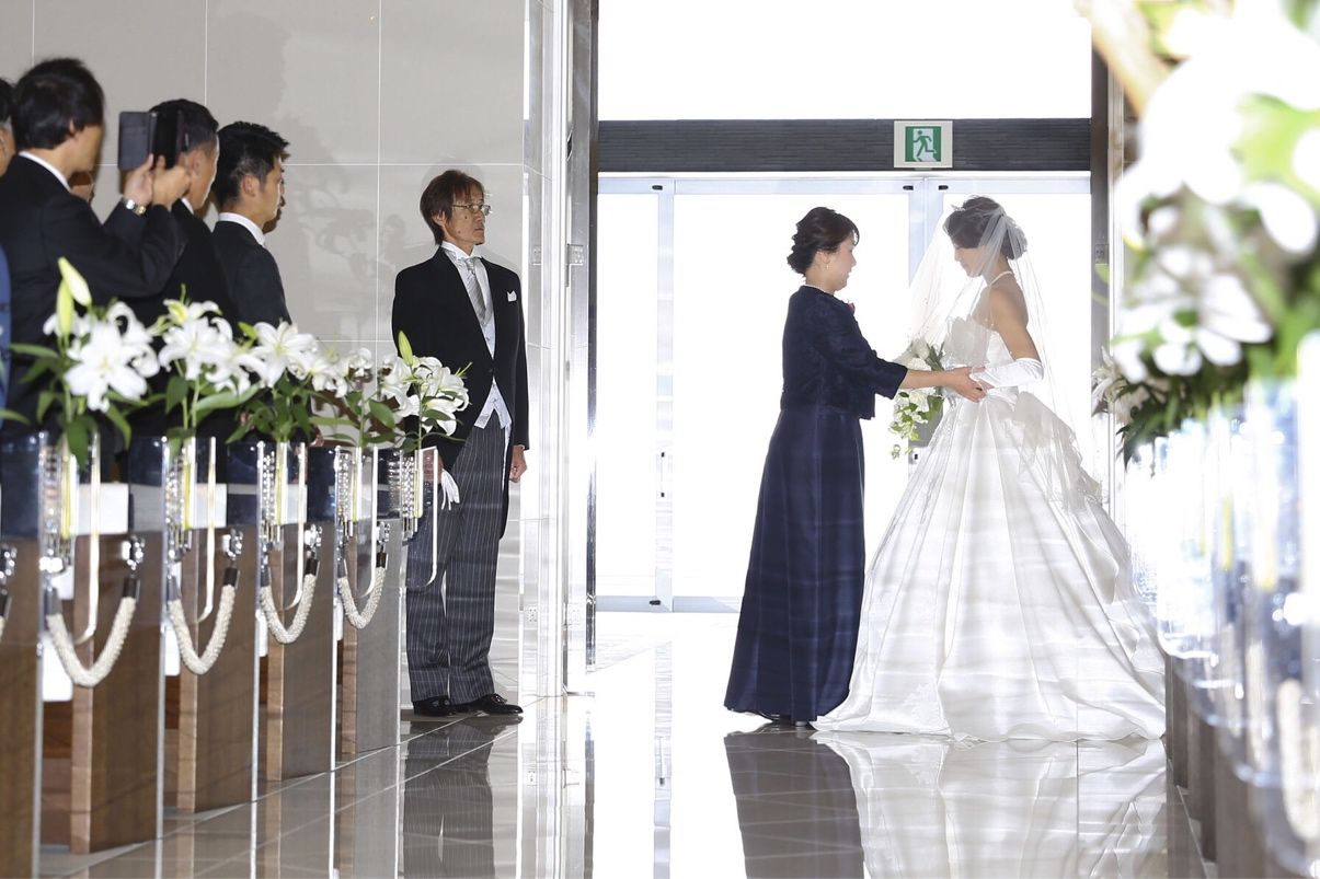 不器用な私の母はプロポーズしてから結婚式当日まで、一度もおめでとうと言ってくれた事がなかったのですが、ベールダウンで初めて目を見て泣きそうになりながらおめでとうとひとこと言ってくれました。