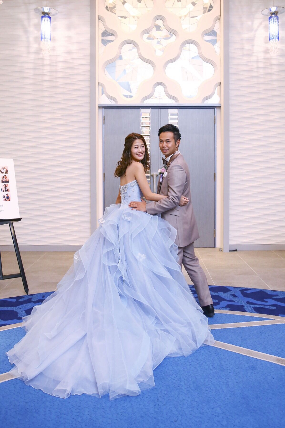 ウェディングをシンプルにする分、カラーではとびっきり可愛らしい花嫁がいい!と思い、上半身にたくさんグリッターがついたものを中心に選びました!