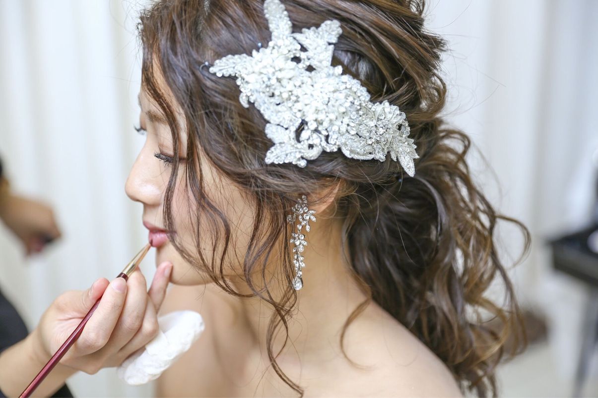 結婚式のために伸ばしたので、普段似合う髪型でなく、あまり挑戦したことのない新しいヘアスタイルで、1番ドレスに合い顔にも合う髪型でいきました!