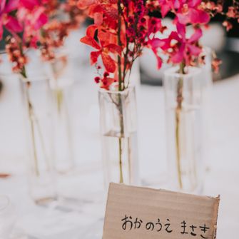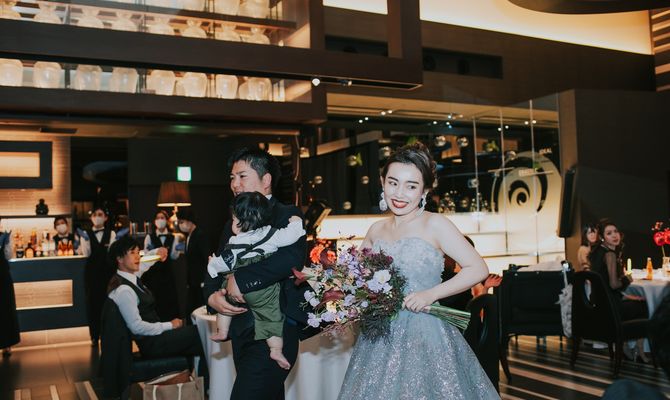 具体的なテーマは決めていなかったですが、一生に一度の結婚式なのでシンプルだけど華やかにということをイメージしながら準備しました。ザ・チェルシーに決めた1番の決め手は、会場が広くせり上がりステージがあるところです!他にこんな披露宴会場ないだろうと思うぐらいの演出ができるところに惹かれて即決しました。