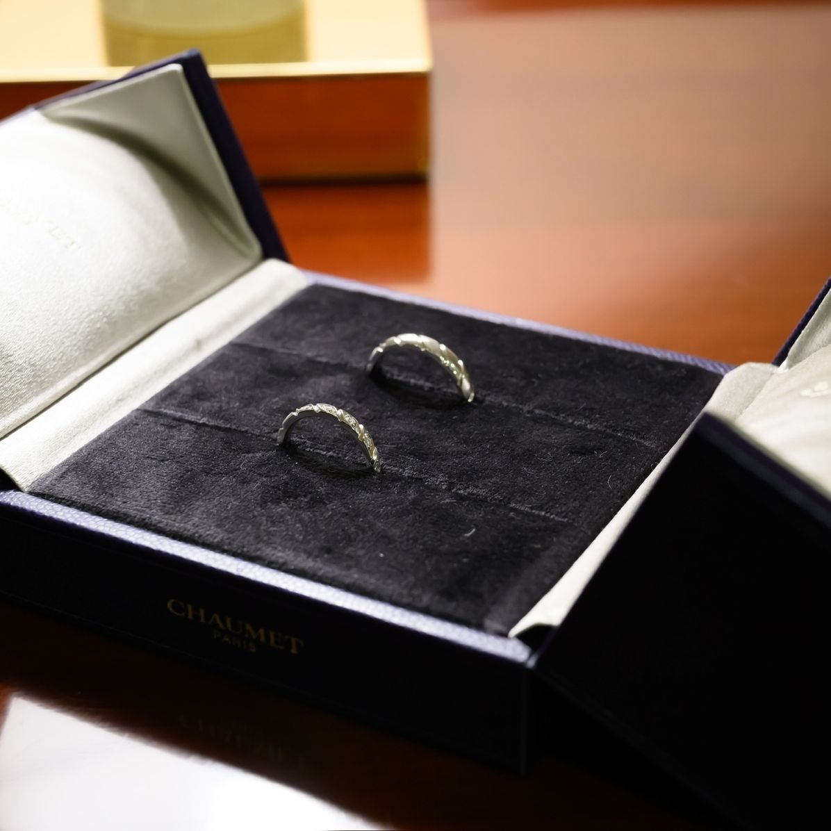 CHAUMETのトルサードにしました!CHAUMETに試着に行く前に2つのブランドに行って迷子になっていましたが、トルサードを試着した時に2人で“着け心地良すぎ〜”となり、即決でした(笑)