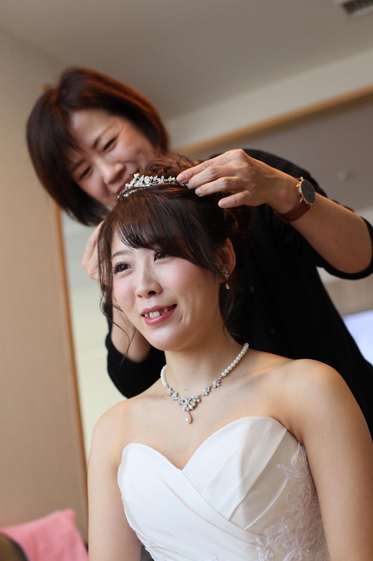 1着目はアップで、ボリュームを出してもらいました。挙式中に横を向いても可愛さがわかるようにしてもらえました。