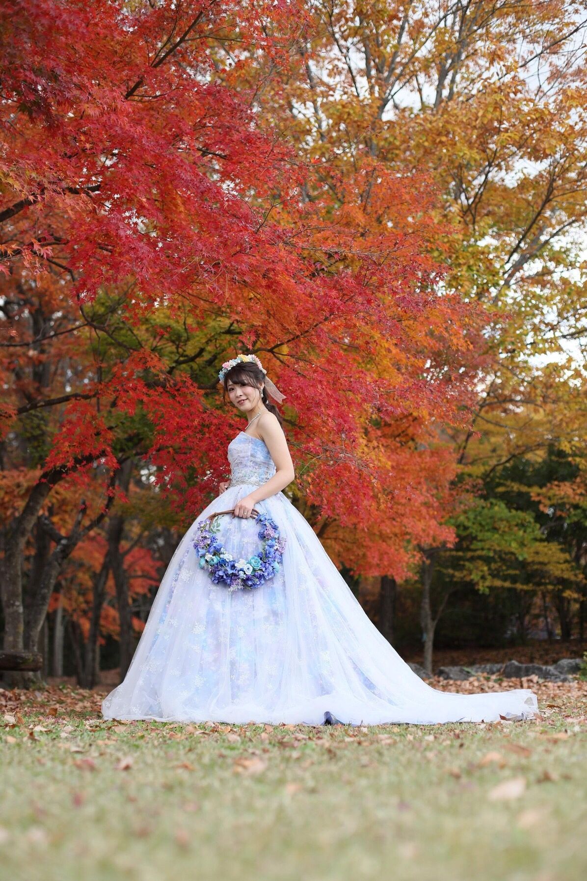 カラードレスの時には、妹に作ってもらった花冠をつけました!ドレスに合わせて色を選んでもらってつけることができました!