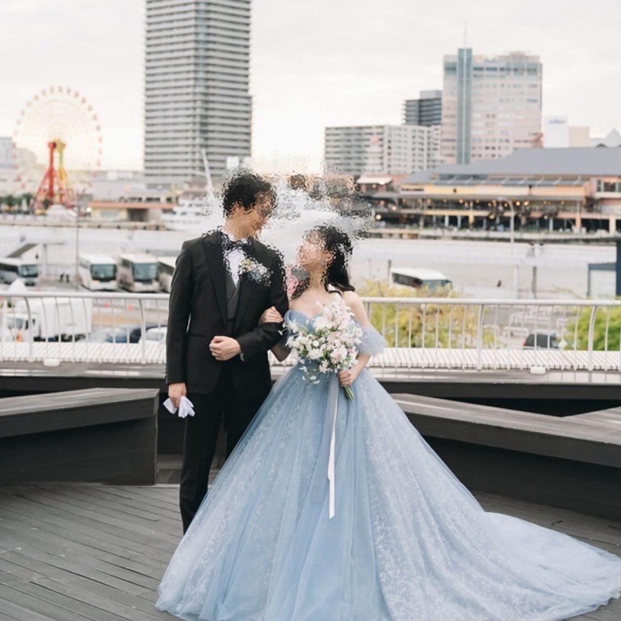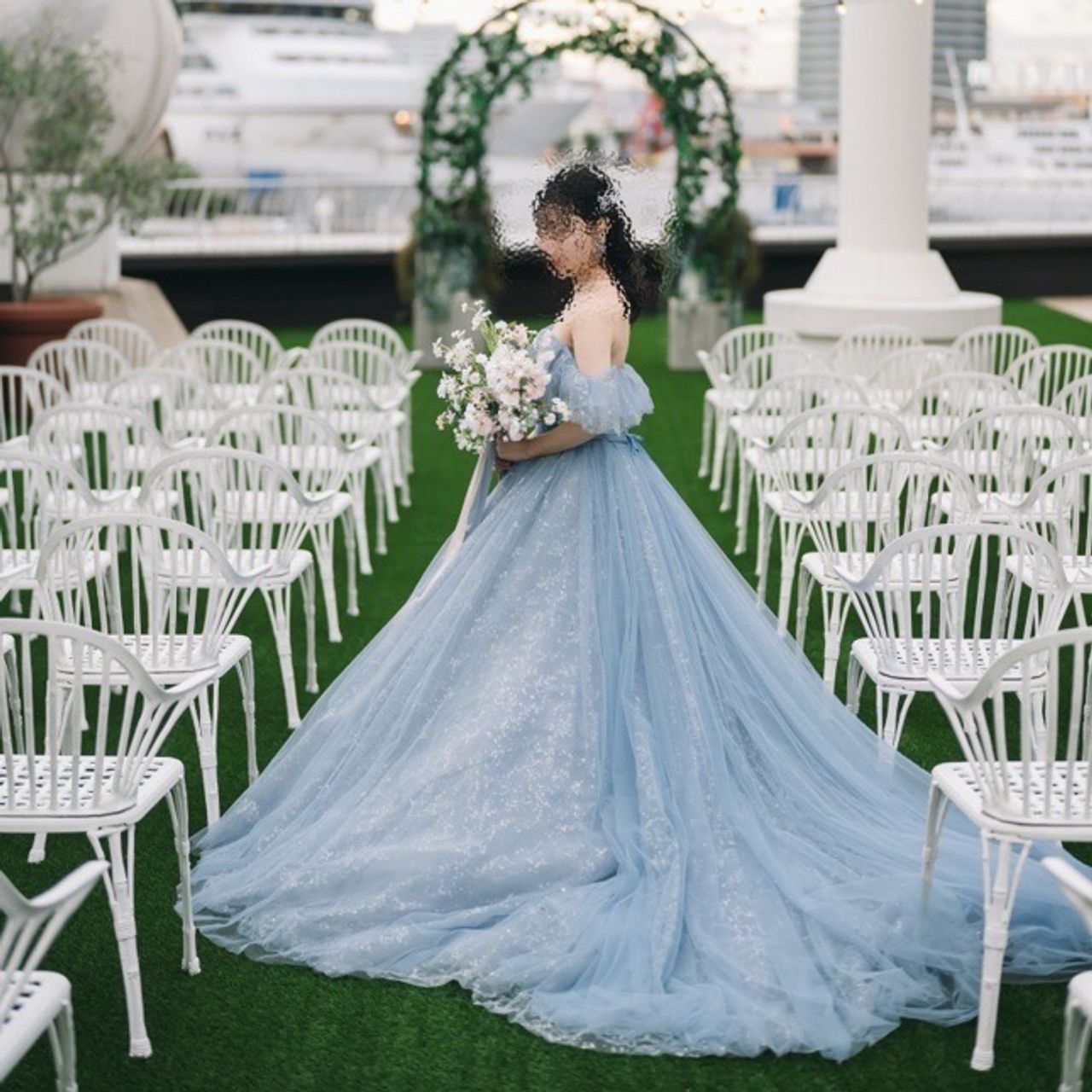 自分の好きな色であるブルーを身にまとえる点に惹かれ、このドレスに決めました。