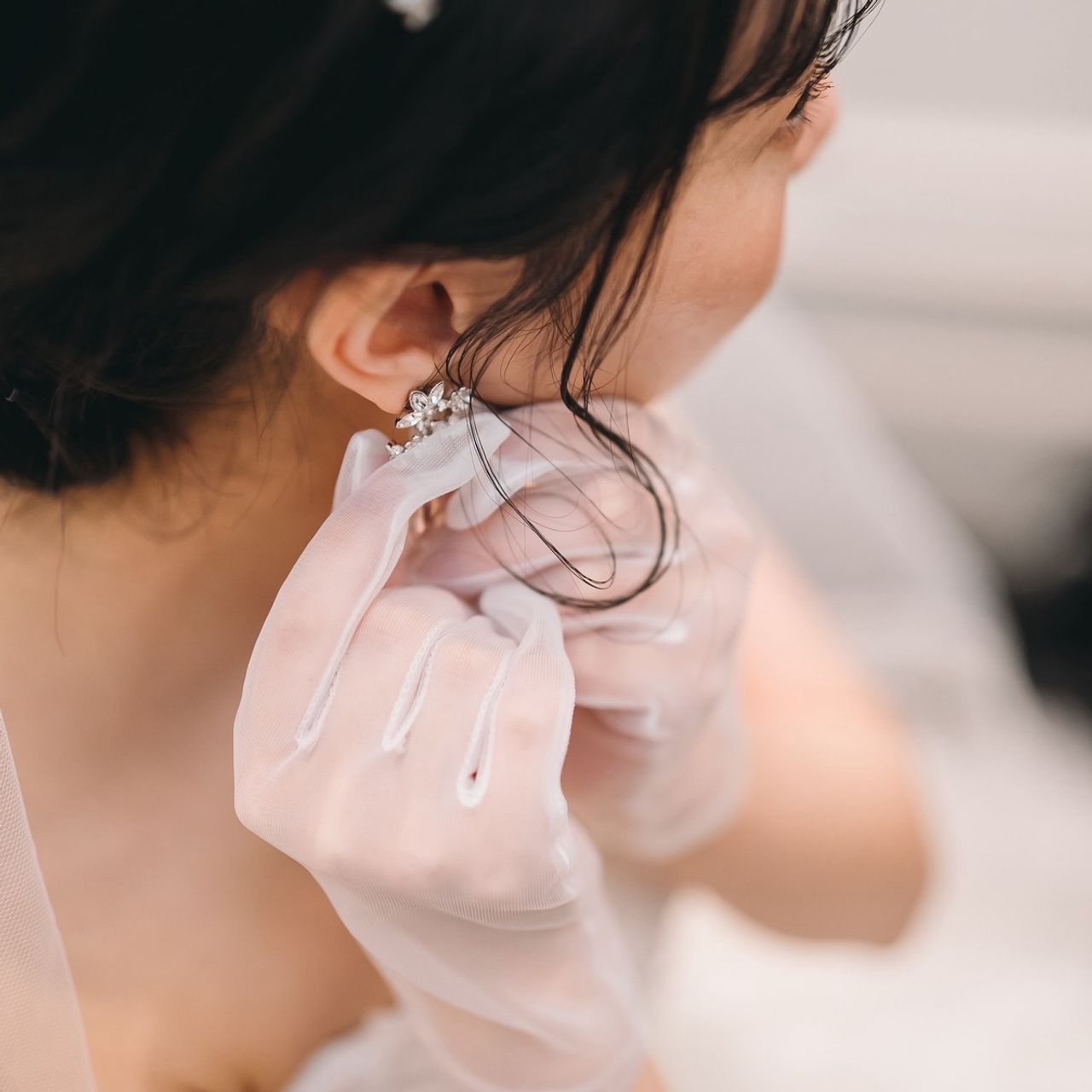 揺れるしずくの飾りは取り外しができるデザインだったため、挙式用・披露宴用・カラードレス用と、同じイヤリングでも雰囲気を変えながら楽しむことができました。
