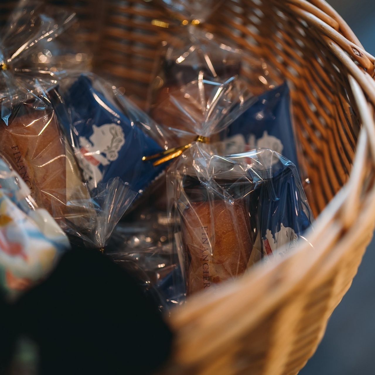 プチギフトは、フィナンシェとバニラチョコサンドクッキーを用意しました。当日のBGMリストも一緒に封入しています。