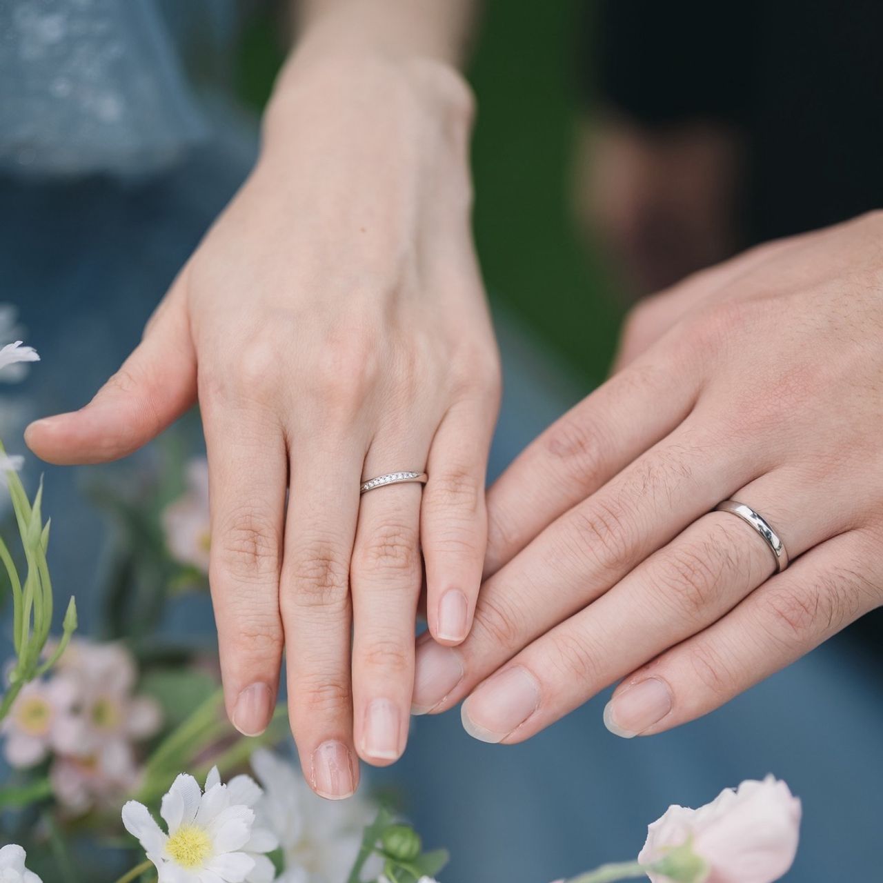 4℃のシルバーのストレートタイプを選びました。斜めに入ったラインに、ダイヤがあしらわれているところがお気に入りです。