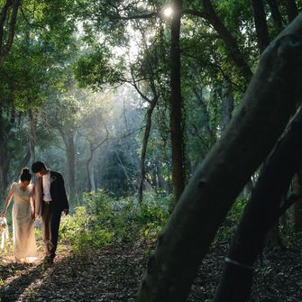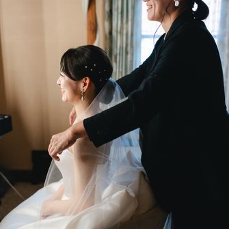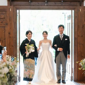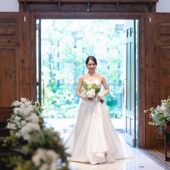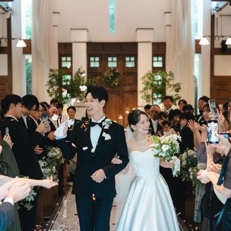 オランジュベールの木造のチャペルに一目惚れして決定しました。プランナーさんを始めとする素敵なスタッフの方々との出会いにも感謝をしています。当日は改めて想いをひとつにするために、式の前に私たちとスタッフの方々全員で円陣を組みました!