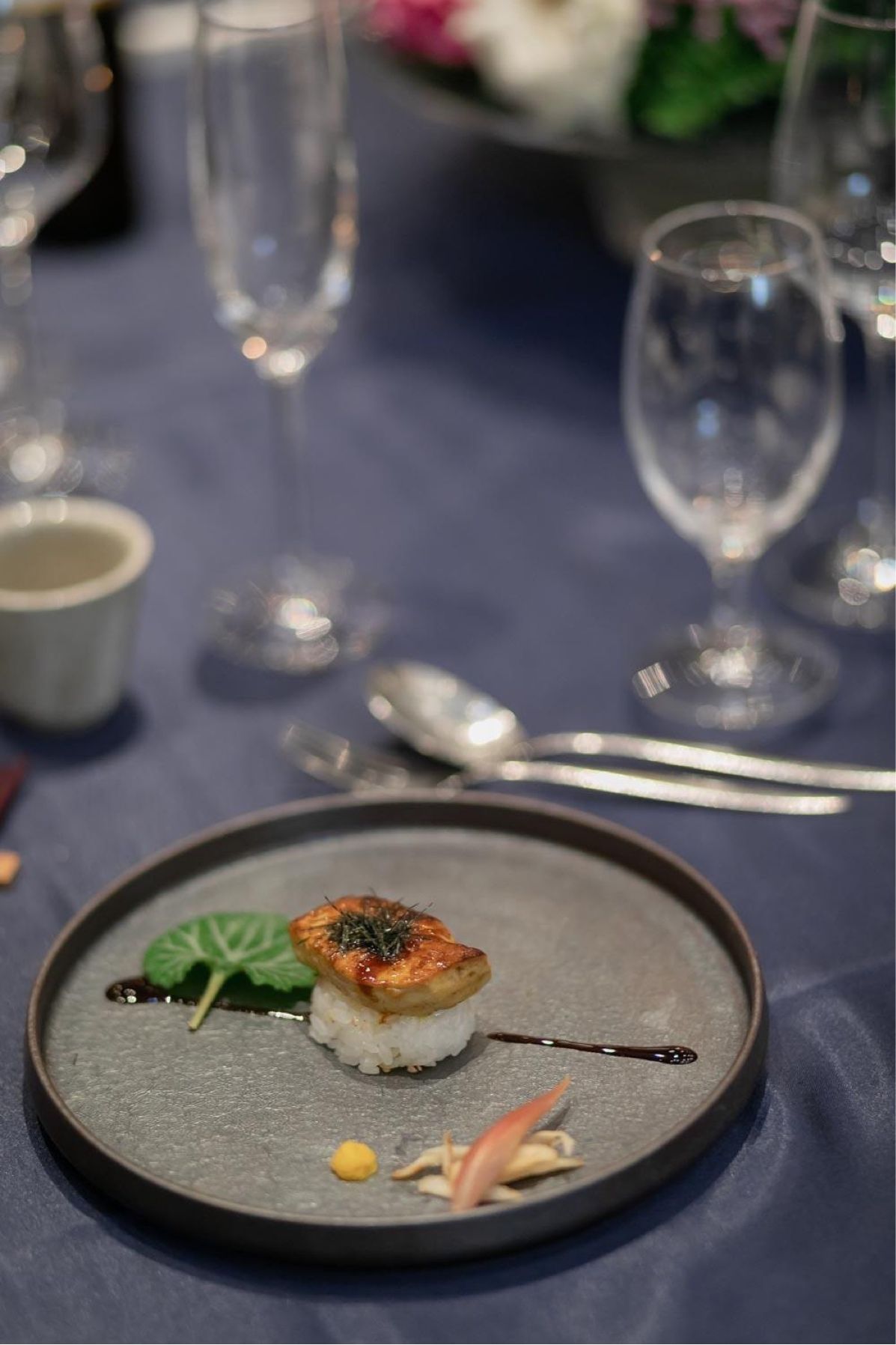 フェアでは名物のフォアグラ寿司等を試食させていただき、これを私達のゲストにも絶対に食べてもらいたいと思い、フォアグラ寿司の付いているコースを選びました。