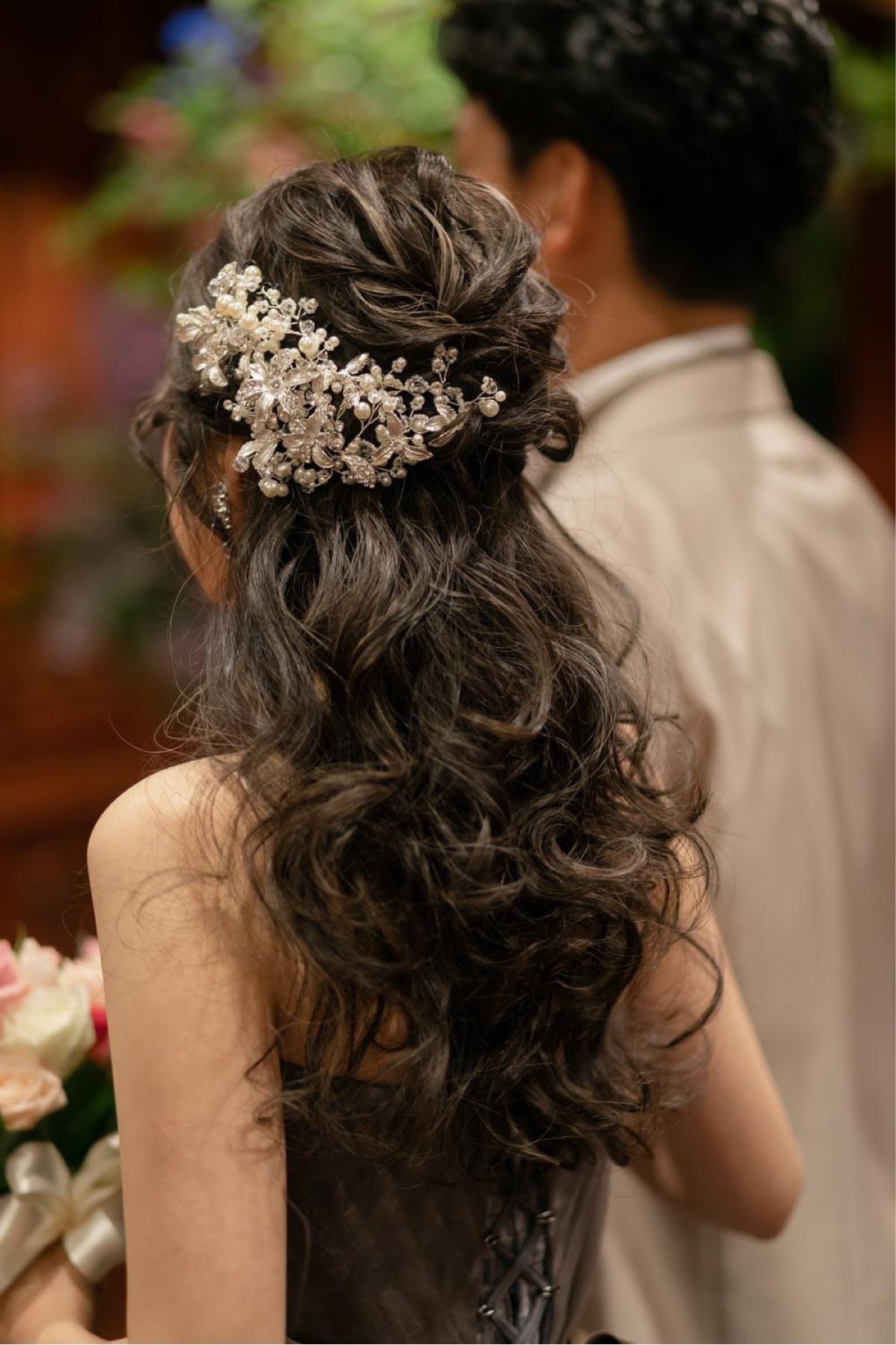 WD:Tous Les Deuxさんでレンタルしたティアラを着用しました。横が広く、高さがないものを選び、可愛くなりすぎず大人っぽいものを選びました。