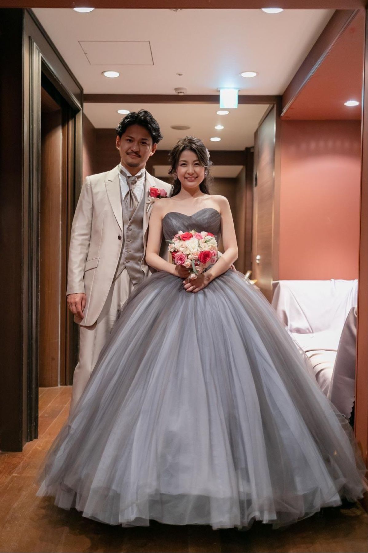 ピンクやパープル等明るめの色が好きですが、あえて大人っぽいグレーのドレスを選びました。普段私が選ばない色ということもあり、ゲストからはかなり驚かれ、とっても好評でした♡