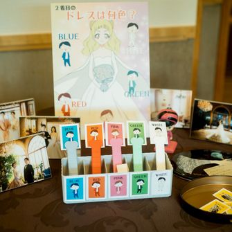一方で、オープニングムービーで使用したゲストとの写真や妹に描いてもらった似顔絵、プロフィールブックのゲスト本人にしかわからないようにそっと忍ばせた思い出、新婦の司会、そして同世代なら懐かしいと思う生演奏の選曲など、私たちとゲスト一人ひとりが同じ時間をともに楽しめる仕掛けを散りばめました。