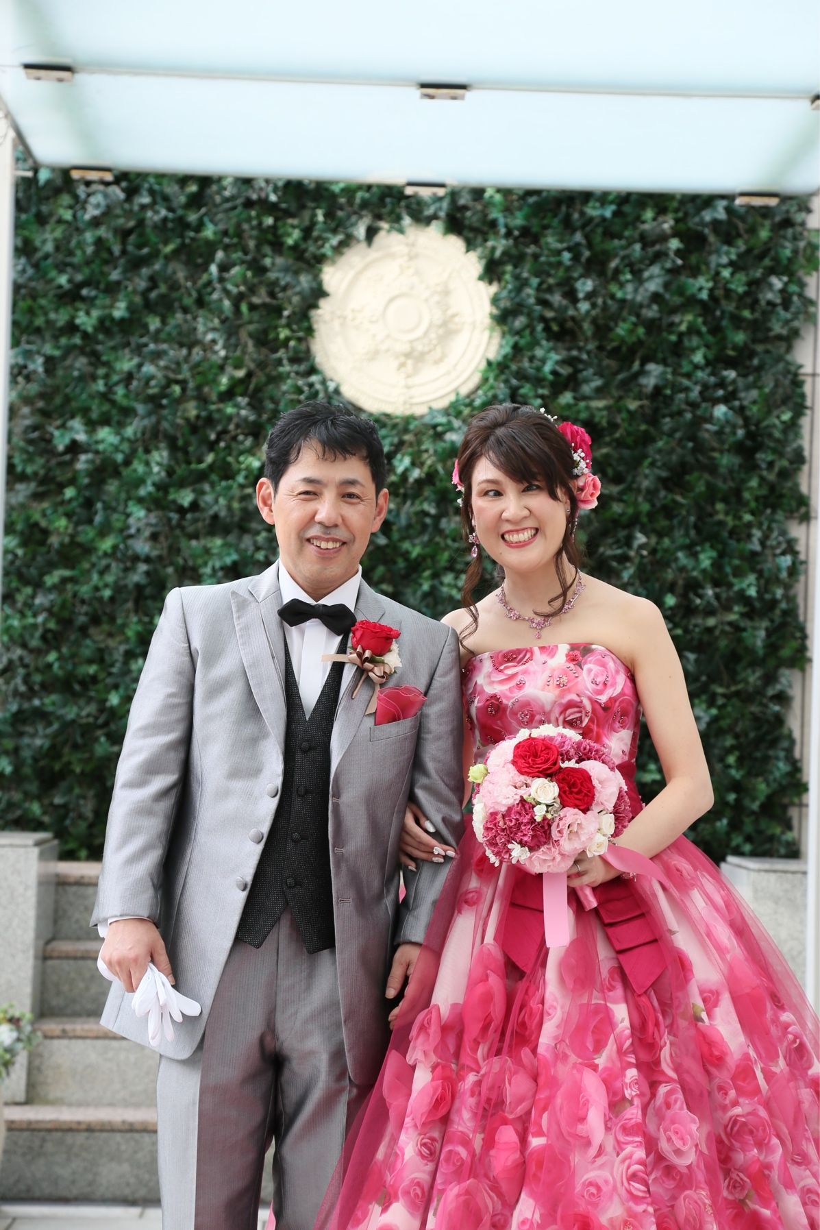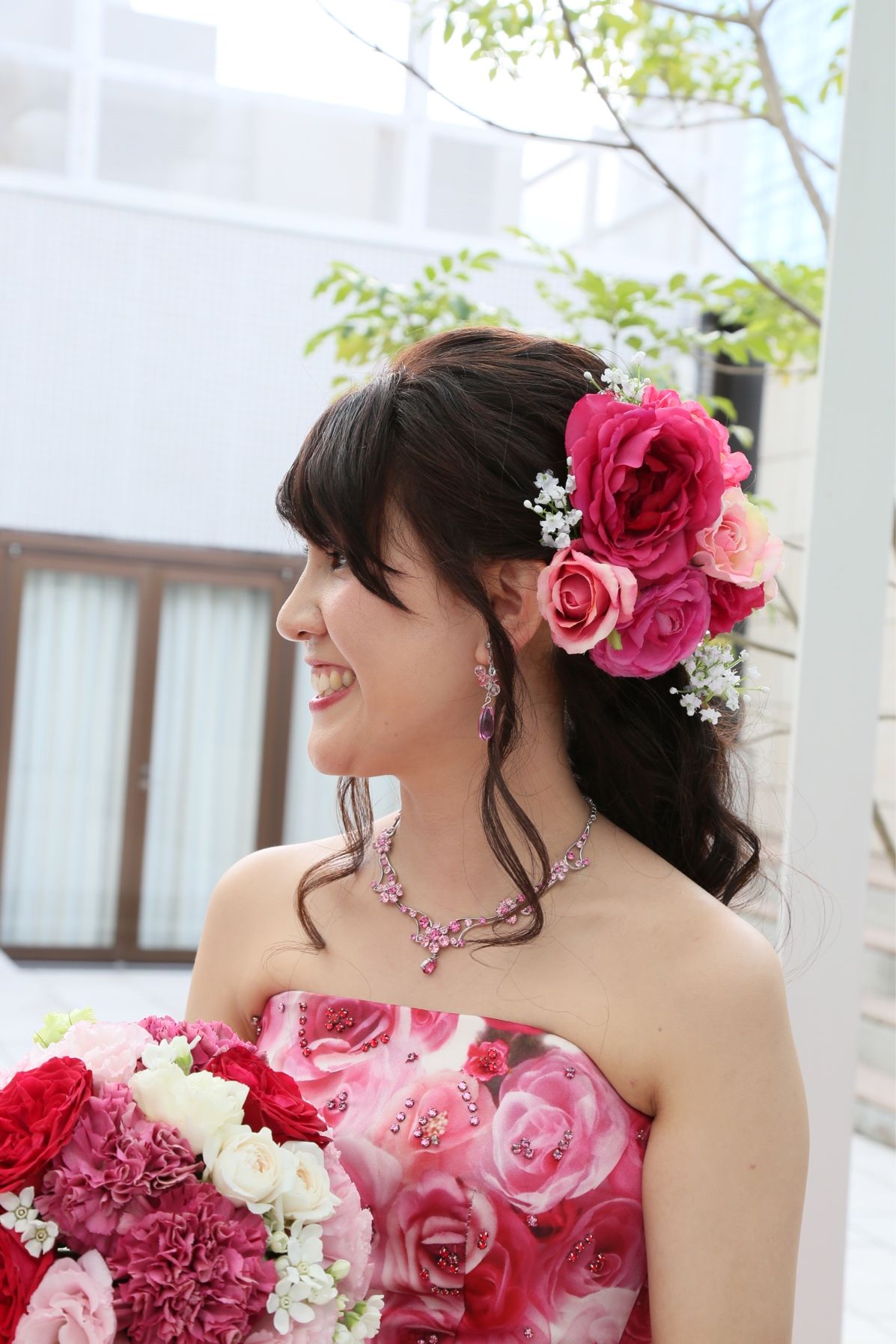 カラードレスはガラッと変えてハタキヨコさんのピンクのバラドレス
