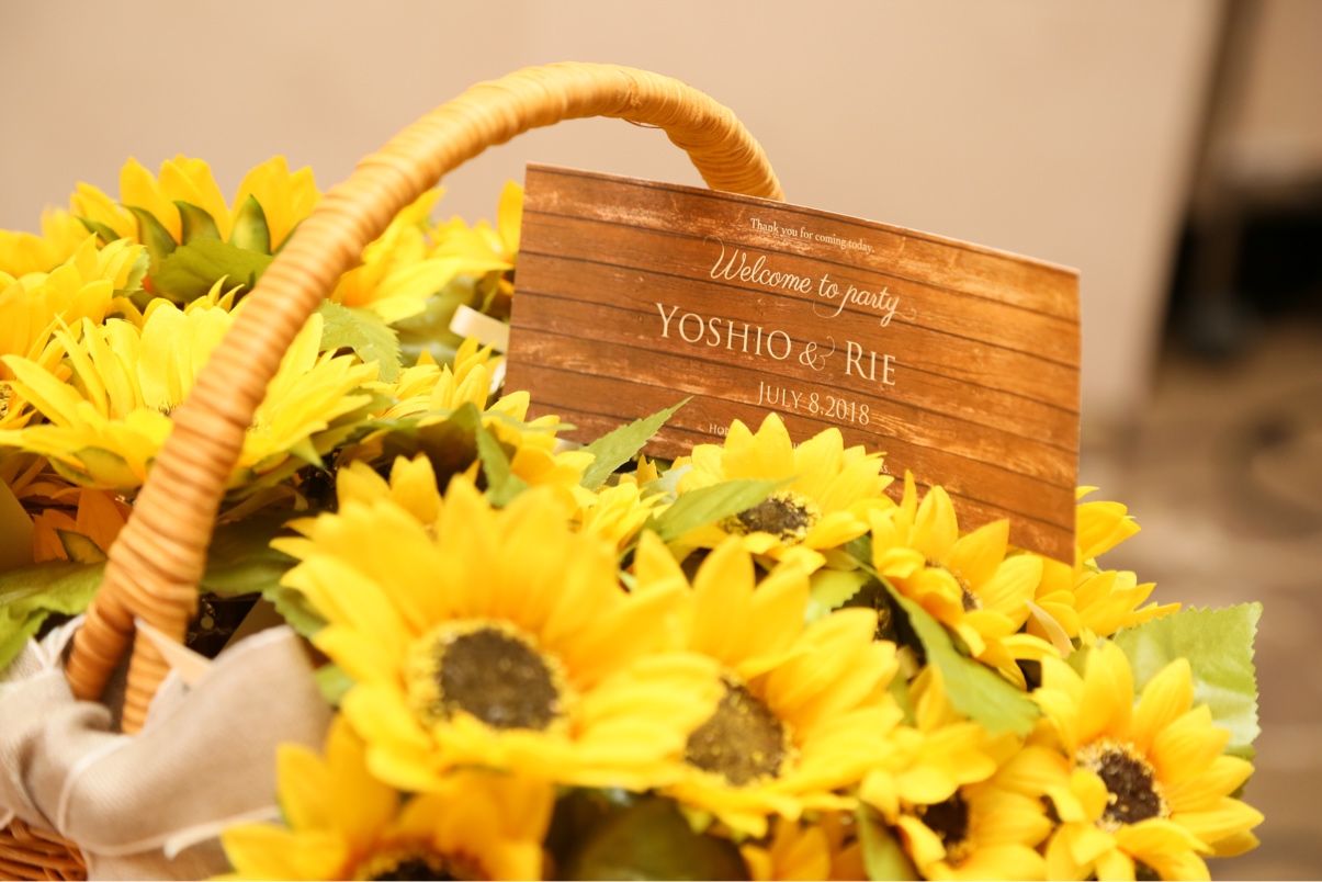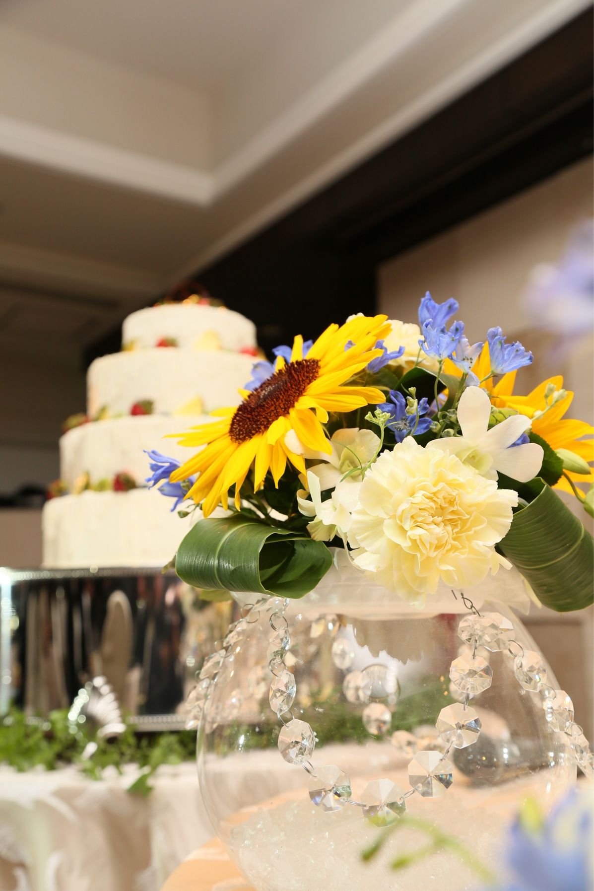 ひまわりのブーケ、装花を取り入れ夏らしさを演出