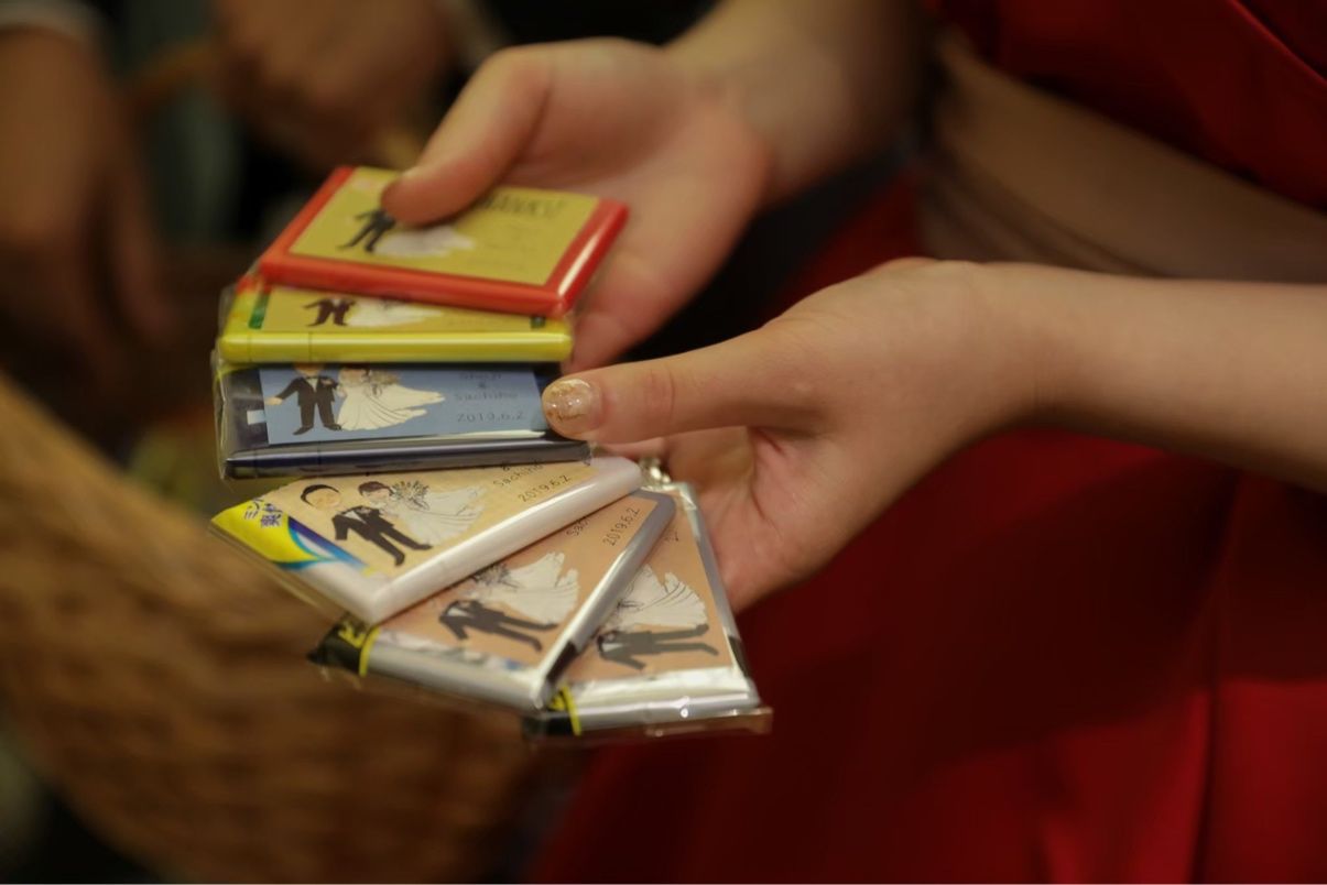 新郎側と新婦側で分けました。ホテル限定のもので特別感を出しました。