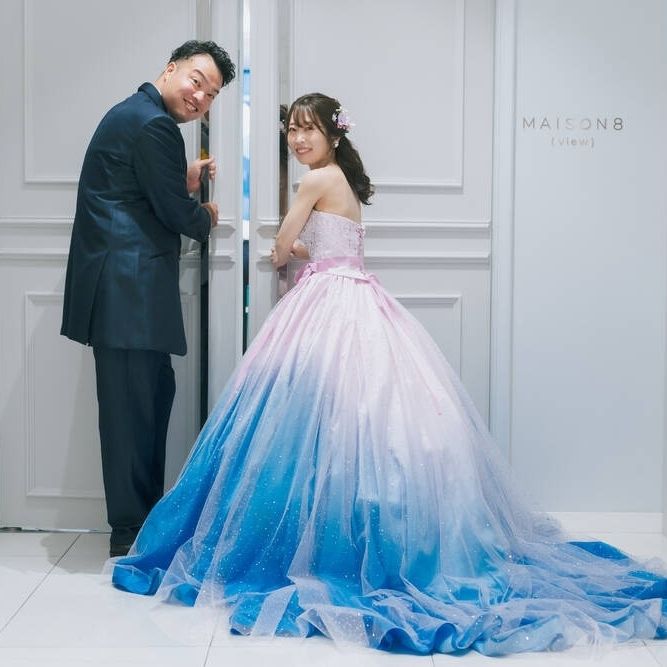 中座の時、友達がカラードレス予想をしてくれていたのですが、ピンクとブルーのグラデーションは予想のななめ上をいっていたようで新郎側のゲストからも驚きの声が聞かれました。「可愛らしくて似合っている」と一番嬉しい感想を友人からもらえました。