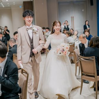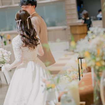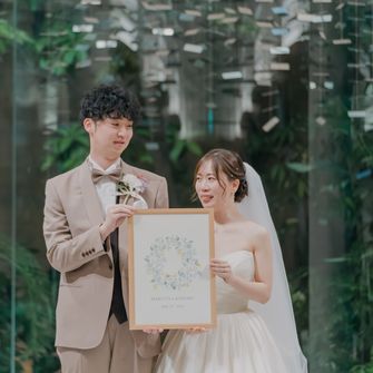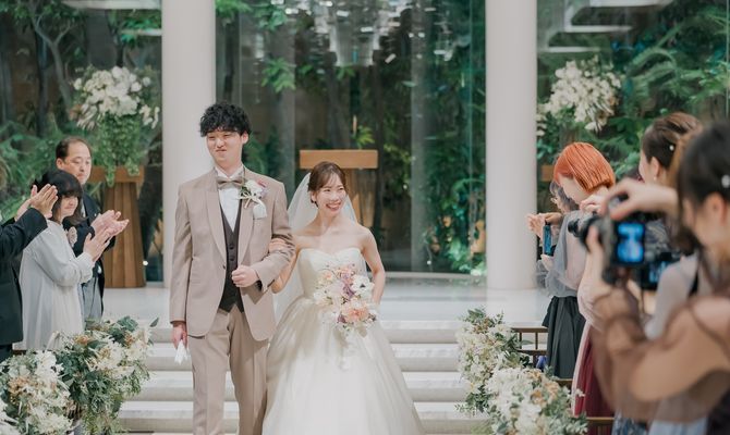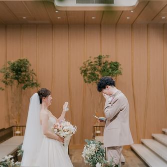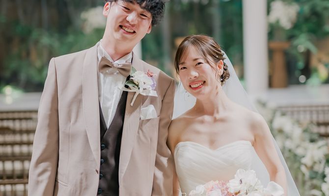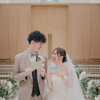 “ゲストや家族に感謝を伝える、みんなに楽しんでもらう”をテーマにしました。普段、感謝の気持ちを伝えることは照れくさくてなかなかできないので、エスコートカードに手紙を入れ、挙式が始まる前にゲスト一人一人にスイッチングレターを読んでもらいました。