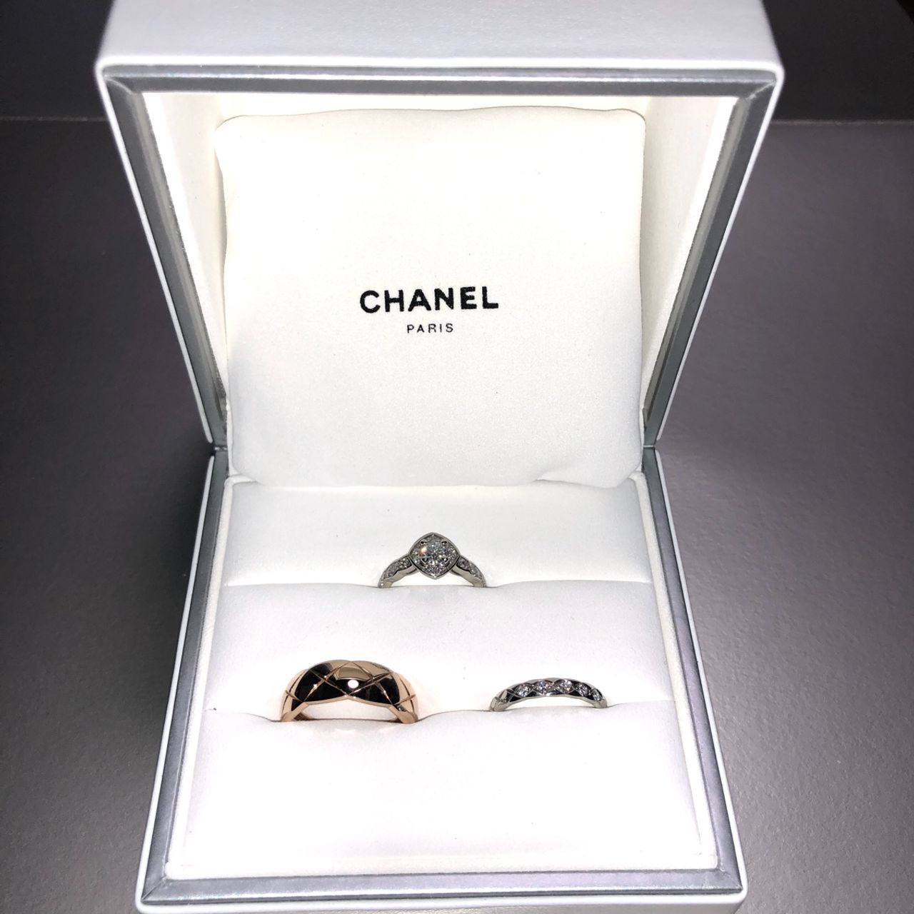 CHANELのココクラッシュ(メインダイヤの周りにメレダイヤが散りばめられているモデル)