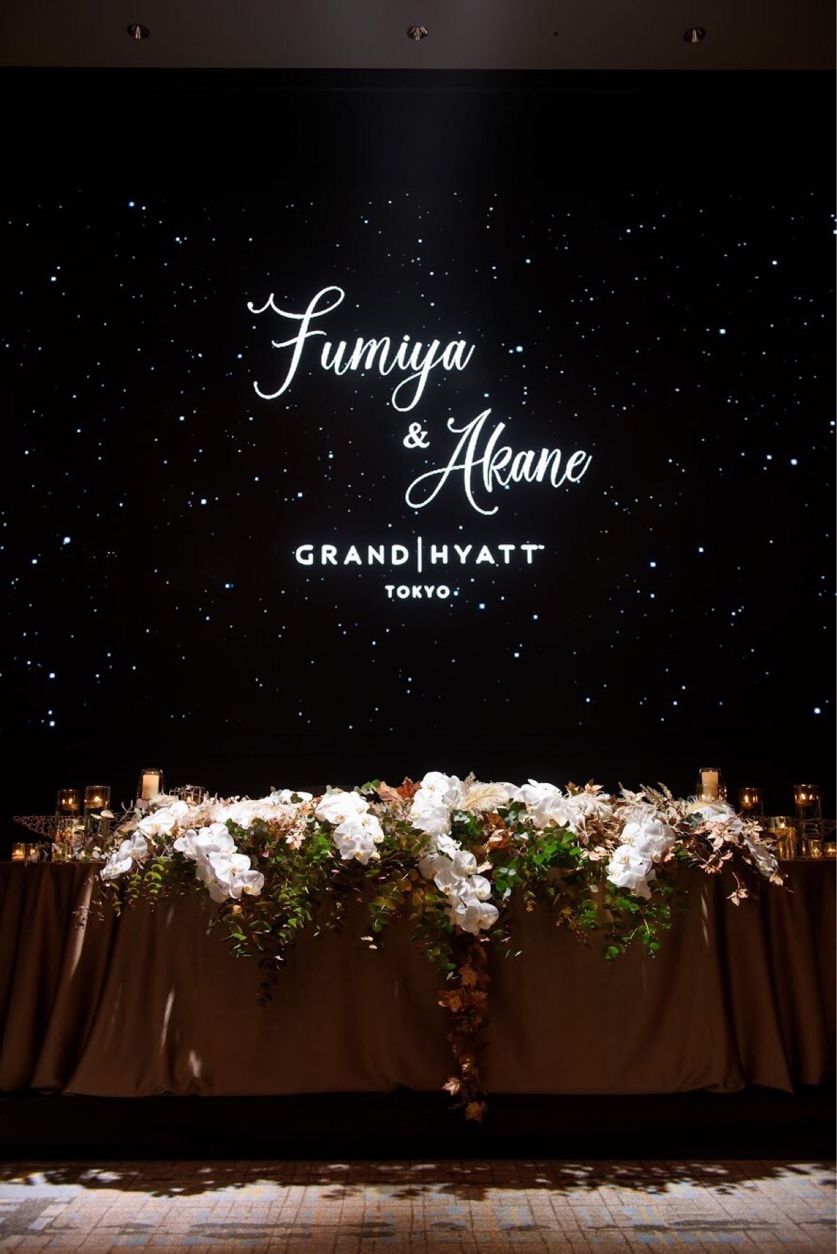 グランドボールルームには「これぞグランドハイアット東京!」と言える代表的な天井LEDライトの装飾があります。天井LEDは色味を変えることが出来、さまざまな雰囲気を演出可能です。