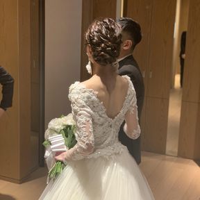 ホテルウェディングであったため、また私の体形は上半身が薄いため、上半身にボリュームを持ってきたかったこともあり、ロングスリーブで探していました。