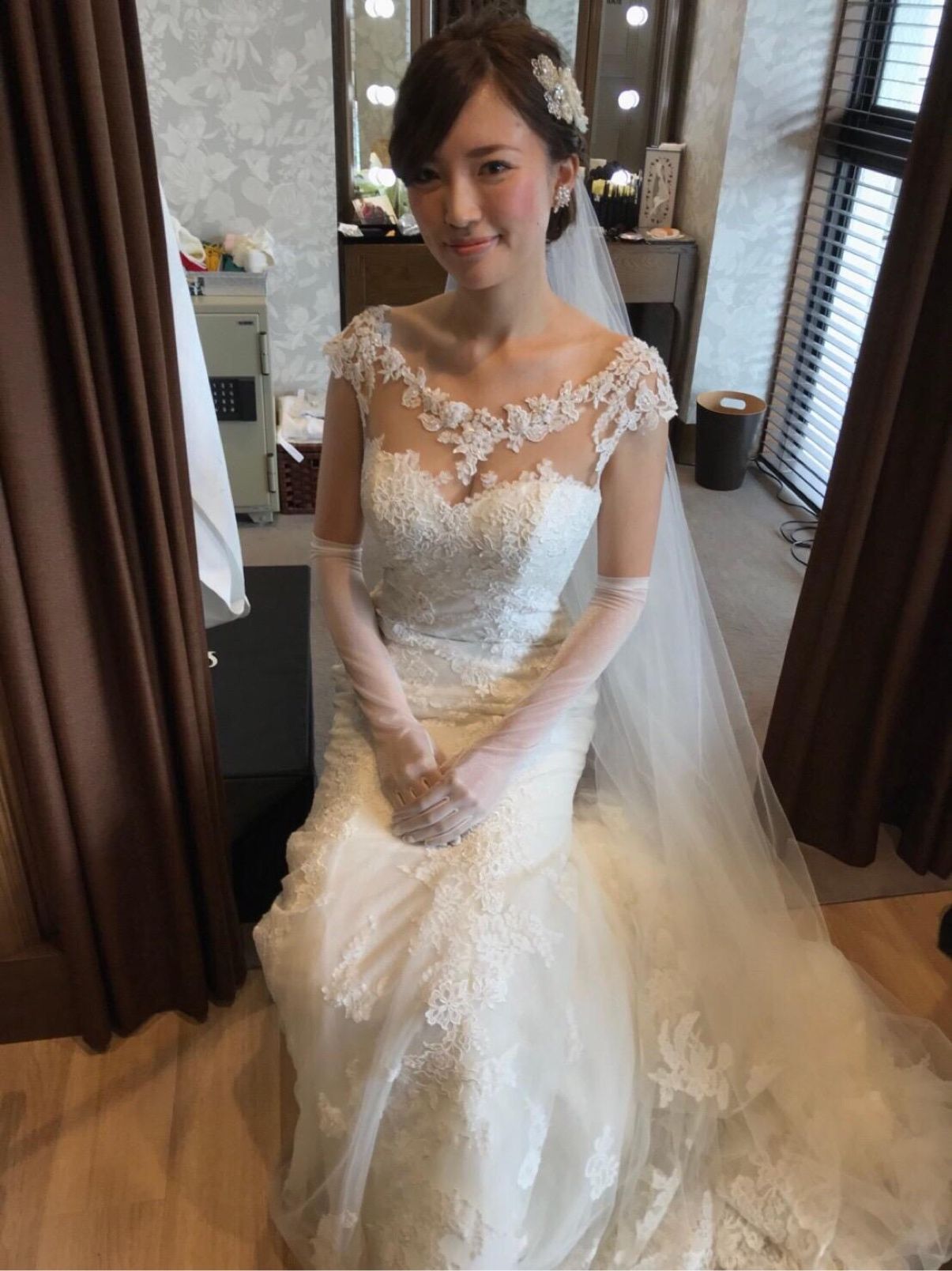ピカソという、スレンダーラインと悩んだのですが最終的には友人やサロンの方の意見も参考に決めました!やはり、客観的な意見も大切なのと似合っているものを着たかったので(*^^*)レースが繊細でデコルテラインなどとても、気に入っています。
