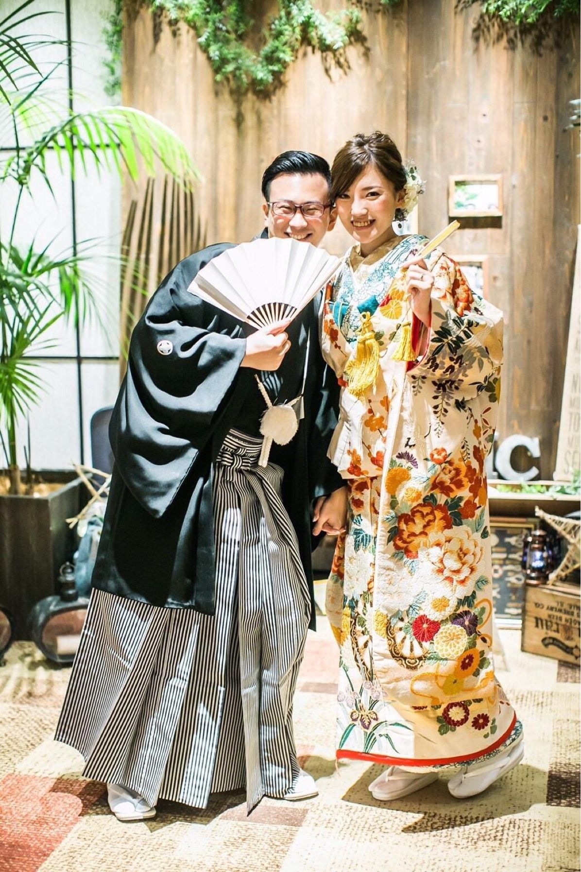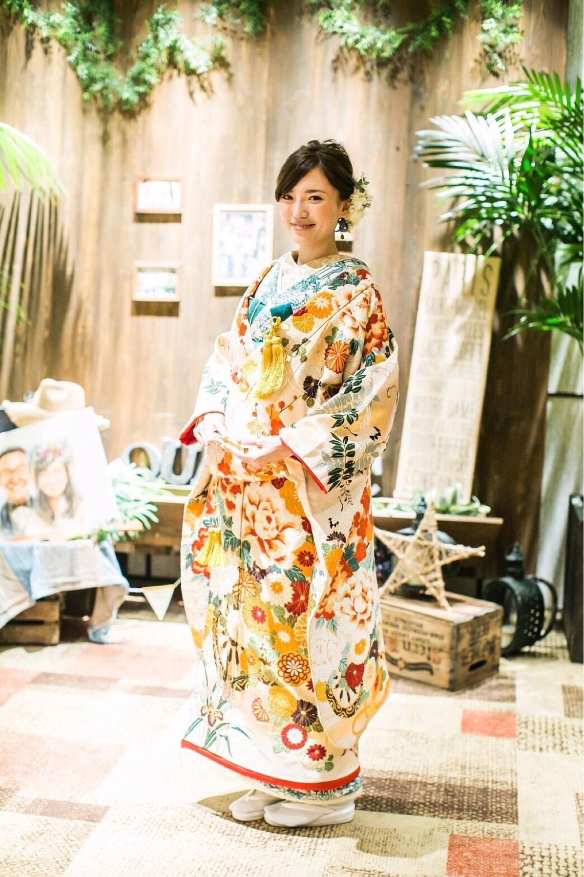 着物は羽織って一目惚れしました。落ち着いた中にも華やかさがあって、一生の思い出になりました!中に着た竹の柄の羽織や、ゴールドの刺繍の襟も柄と柄の合わせですが好評でした。